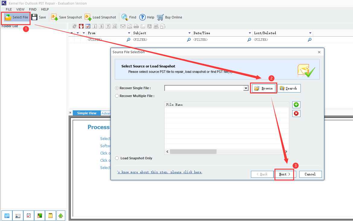 Druhá metoda: Získejte smazané Outlook složky s Kernel for PST Repair