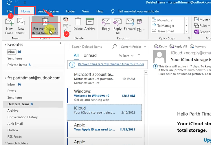 Krok 2: Klepněte na Recover Deleted Items from Server