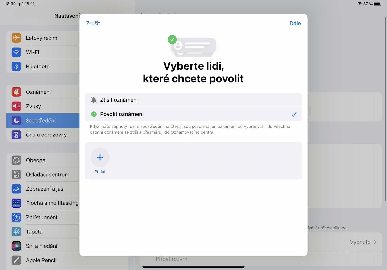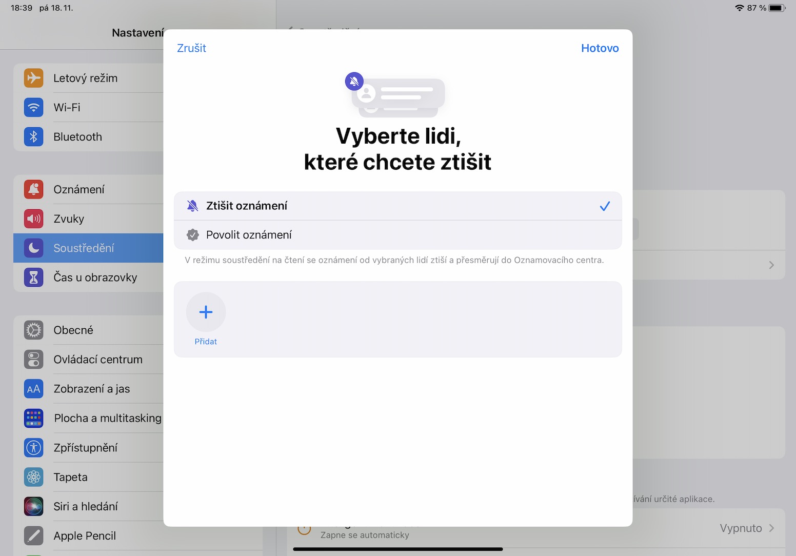Doposud si uživatelé v jednotlivých režimech soustředění mohli nastavit pouze povolené aplikace a kontakty. To znamená, že veškeré aplikace a kontakty byly ztišené, až na vybrané výjimky. V novém iPadOS 16 už si však můžete režim soustředění nastavit přesně naopak, tedy aby byl povolen příchod oznámení ze všech aplikací a hovory a zprávy od všech kontaktů, až na výjimky. Nejedná se o nic složitého, stačí přejít do Nastavení → Soustředění, kde otevřete konkrétní režim, a poté nahoře v kategorii Vypínání oznámení klepněte na Lidé či Aplikace. Zde už jen v menu podle potřeby vyberte Ztišit oznámení nebo Povolit oznámení. Pak nezapomeňte přidat samotné výjimky.