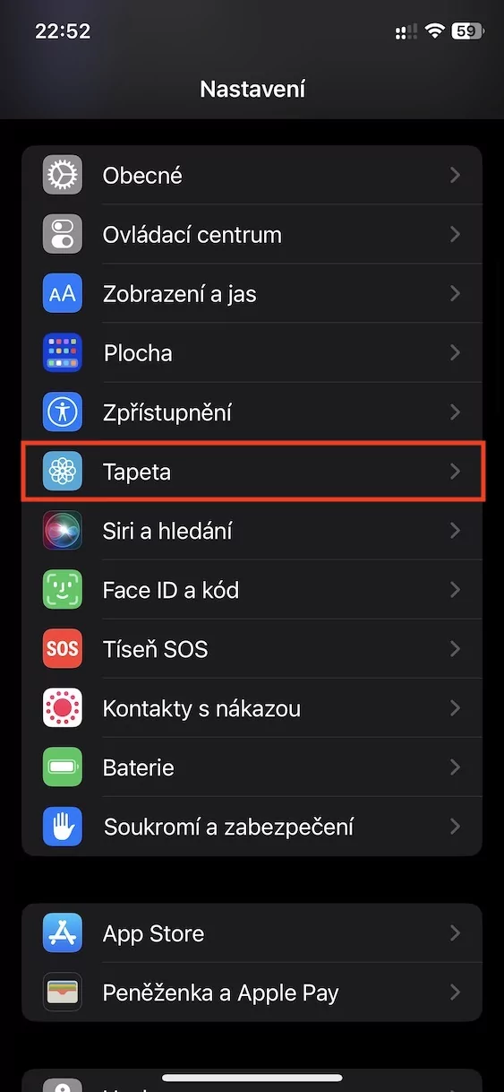 - Jakmile tak učiníte, sjeďte níže a rozklikněte kolonku Tapeta.