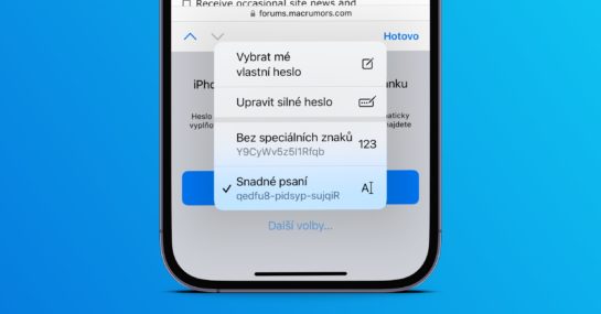 Pokud jste si donedávna v Safari na iPhonu vytvářeli nový účet a došlo k automatickému vygenerování bezpečného hesla, tak jste s ním nemohli nic moc dělat. Prakticky jste vygenerované heslo ani pořádně neviděli, zkrátka došlo k jeho uložení do klíčenky a následně už jste se autorizovali třeba pomocí Touch ID či Face ID. Problém byl ale v tom, že některé webové stránky mají pro hesla specifické požadavky – například nemusí podporovat speciální znaky apod. V novém iOS 16 tak přibyla možnost, díky které si můžete vybrat typ bezpečného hesla při zakládání nového účtu. Stačí postupovat následovně: