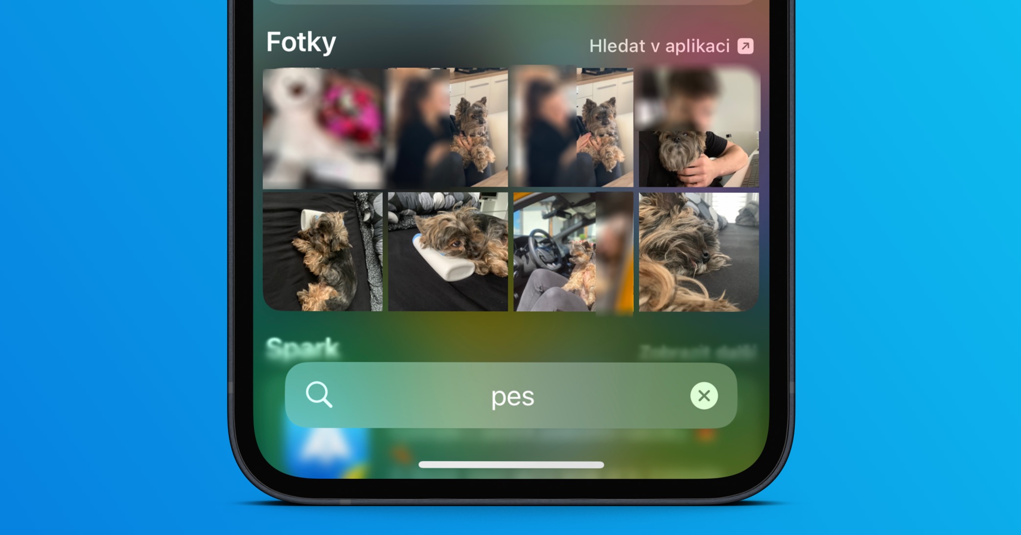 Spotlight dokáže již delší dobu vyhledávat obrázky podle zadaného popisu. Pokud v něm tedy například vyhledáte slovo „pes“, tak se vám ihned zobrazí veškeré fotky, na kterých se nachází pes – a takto to funguje i s ostatními slovy a výrazy, případně i v angličtině. Doposud se však zobrazovaly pouze výsledky z nativní aplikace Fotky, což se v iOS 16 mění. Kromě Fotek dokáže Spotlight nově vyhledávat také fotky ze Zpráv, Poznámek a Souborů, což rozhodně přijde vhod.