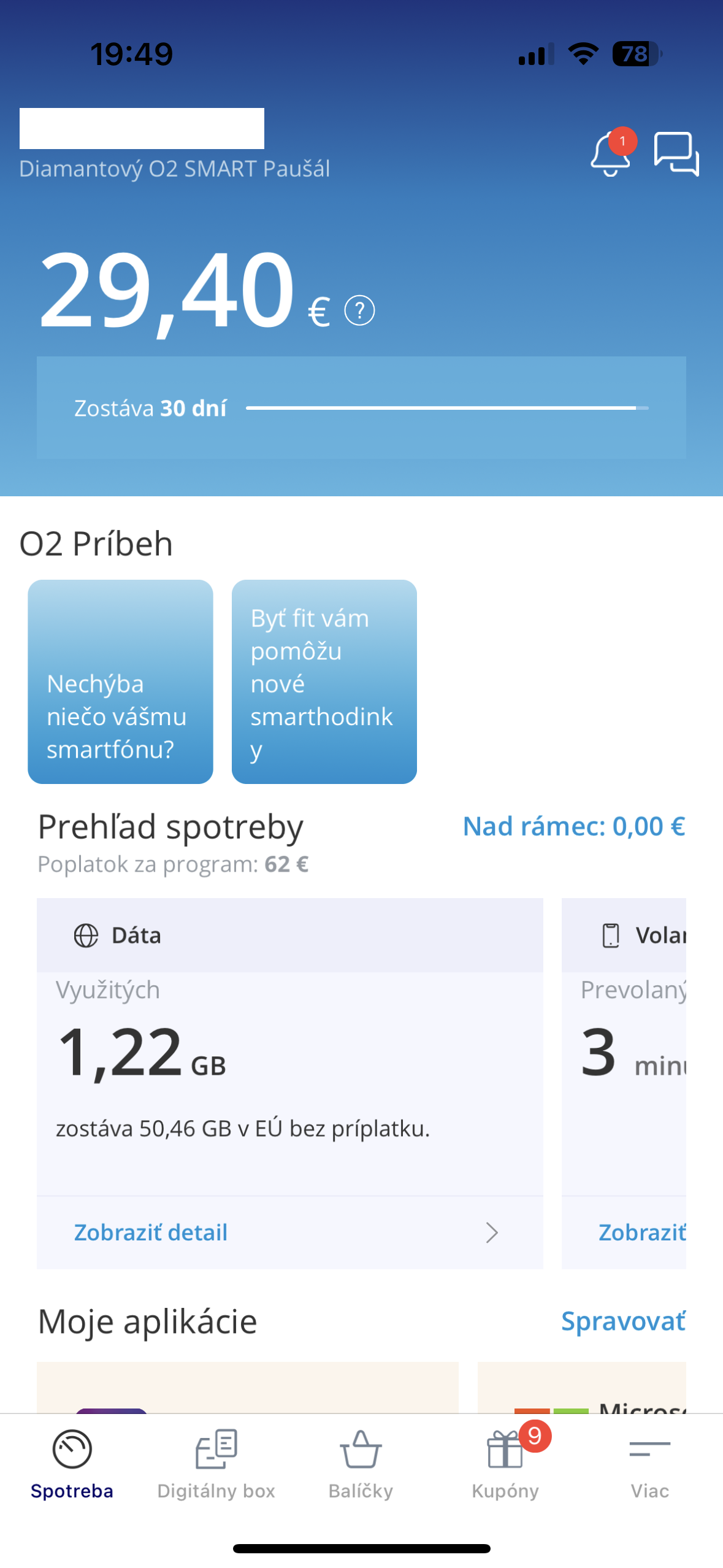 Zde mi nabídli neomezený tarif, který skutečně nabízí FUP limi 1TB měsíčně a téměř 50 GB rámci EU, za částku 29,40€, tedy za méně než polovinu a to navíc jako člověku, který s O2 neměl nikdy nic společného. O2 nabízí v drtivé většině míst, kde se pohybuji, pokrytí 5G a i v rámci Evropy, po které cestuji téměř pořád se mi zdálo, že 50 GB vystačí, což se ukázalo jako pravda. Nakonec jsme se tedy dohodli a já jsem až po prvním spuštění aplikace zjistil, že tím, že zaplatím o více než polovinu méně než v případě Telekomu celá sranda nekončí. O2 mi jako bonus nabídlo přidat si 3 různé placené aplikace zdarma k mému paušálu.