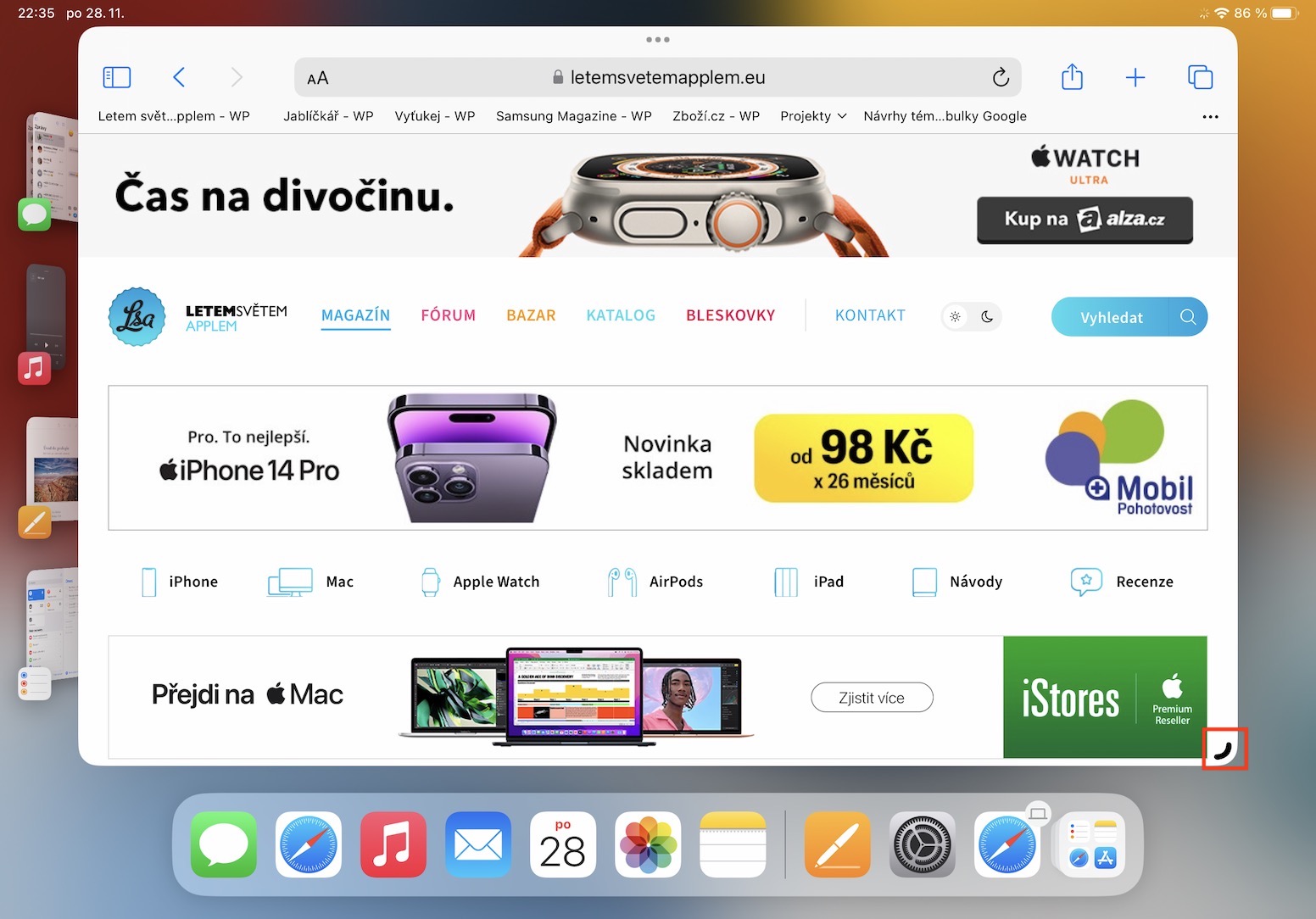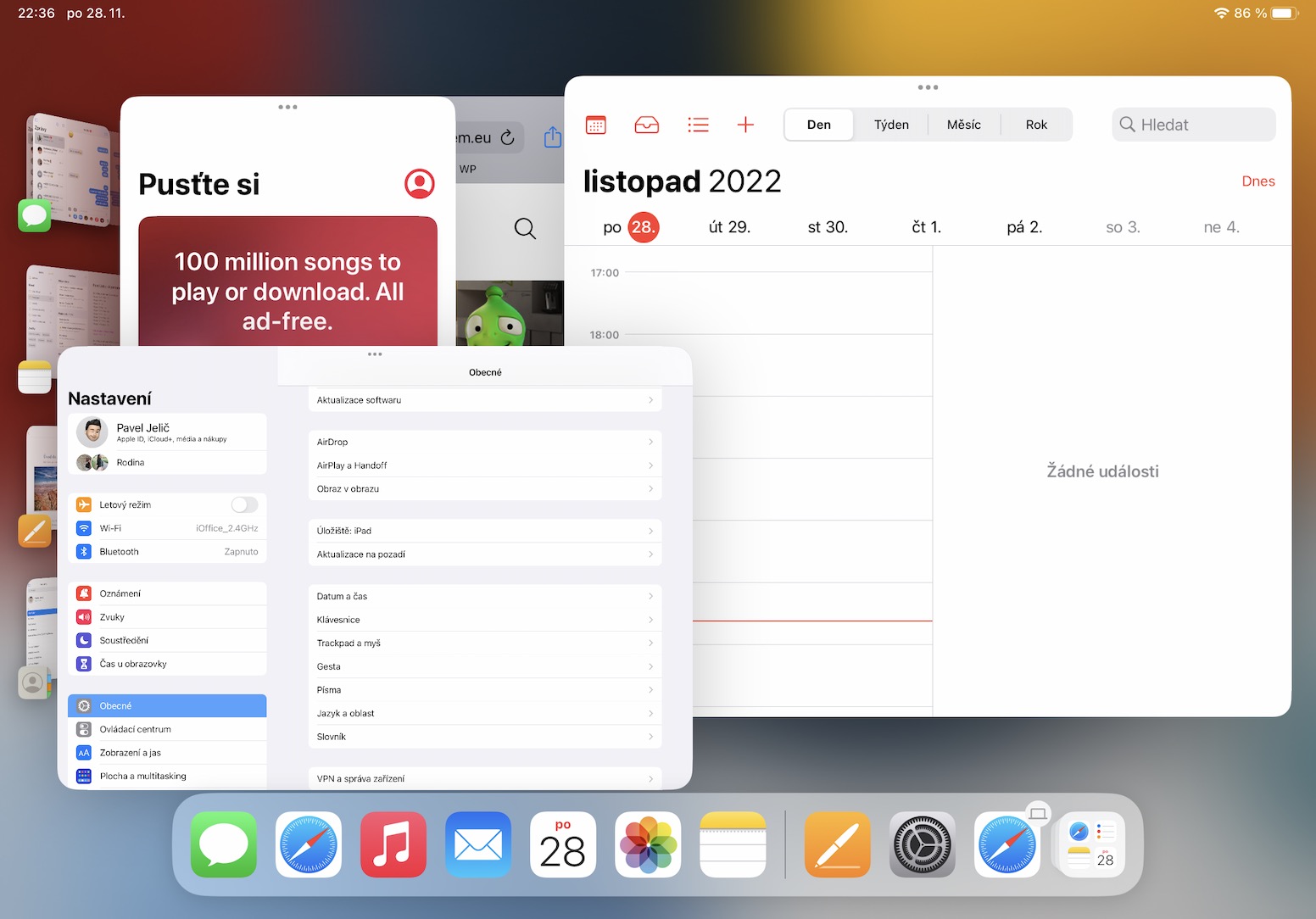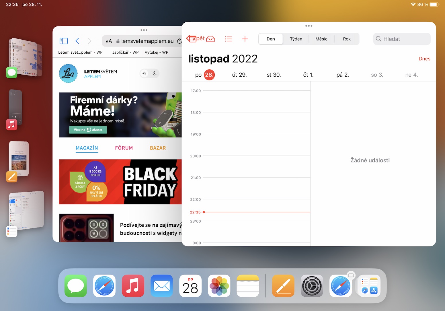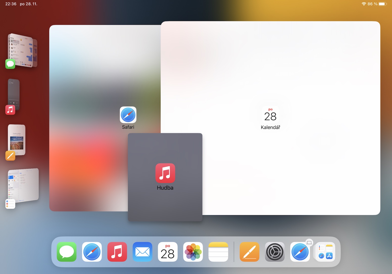 V určité situaci může dojít k tomu, že vám kompletně zmizí levý panel, kde se nachází veškerá okna a aplikace. Pro jeho zobrazení pouze stačí, abyste přejeli prstem z levé hrany displeje směrem doprava. Případně se panel zobrazí vždy, když provedete zmenšení velkého okna. A pokud byste chtěli zobrazit Dock, tak stačí klasicky přejet prstem ze spodní hrany nahoru.