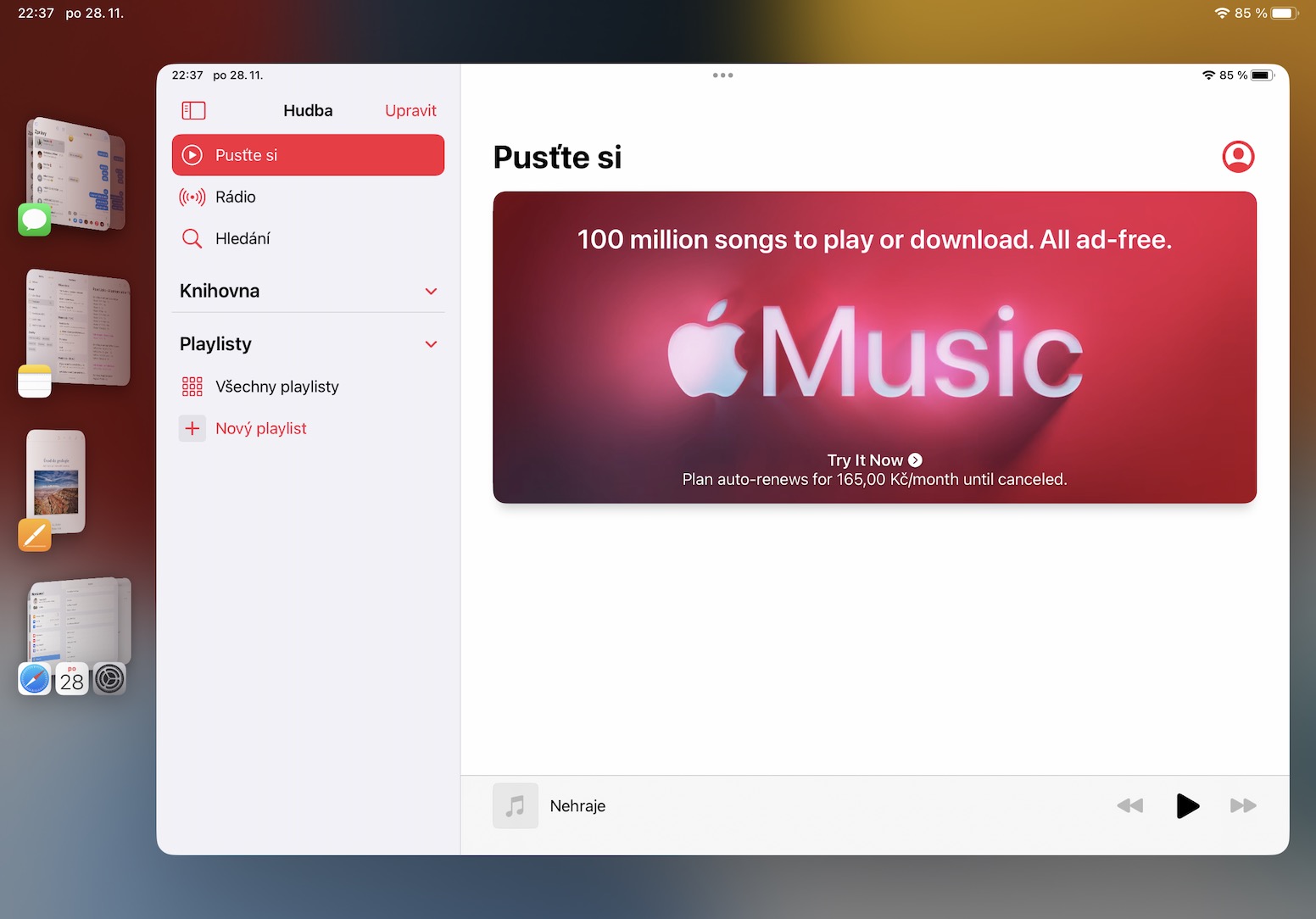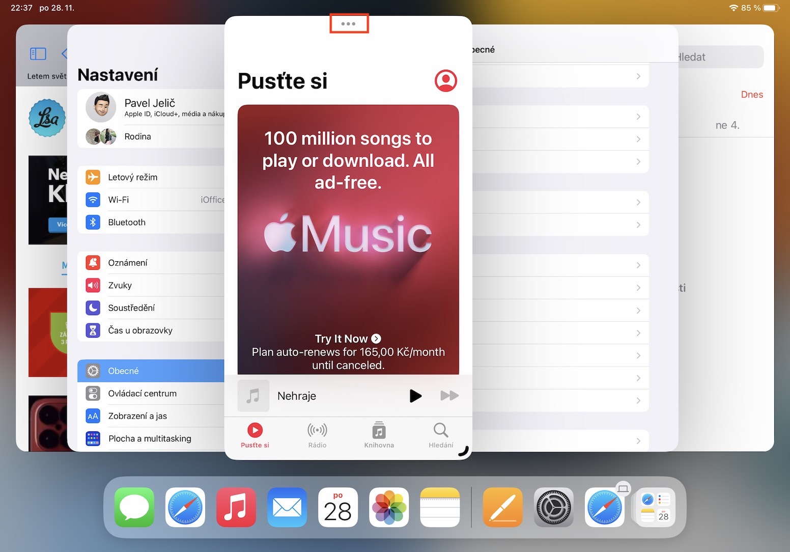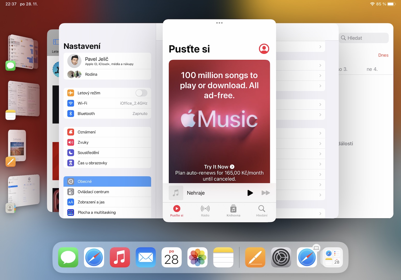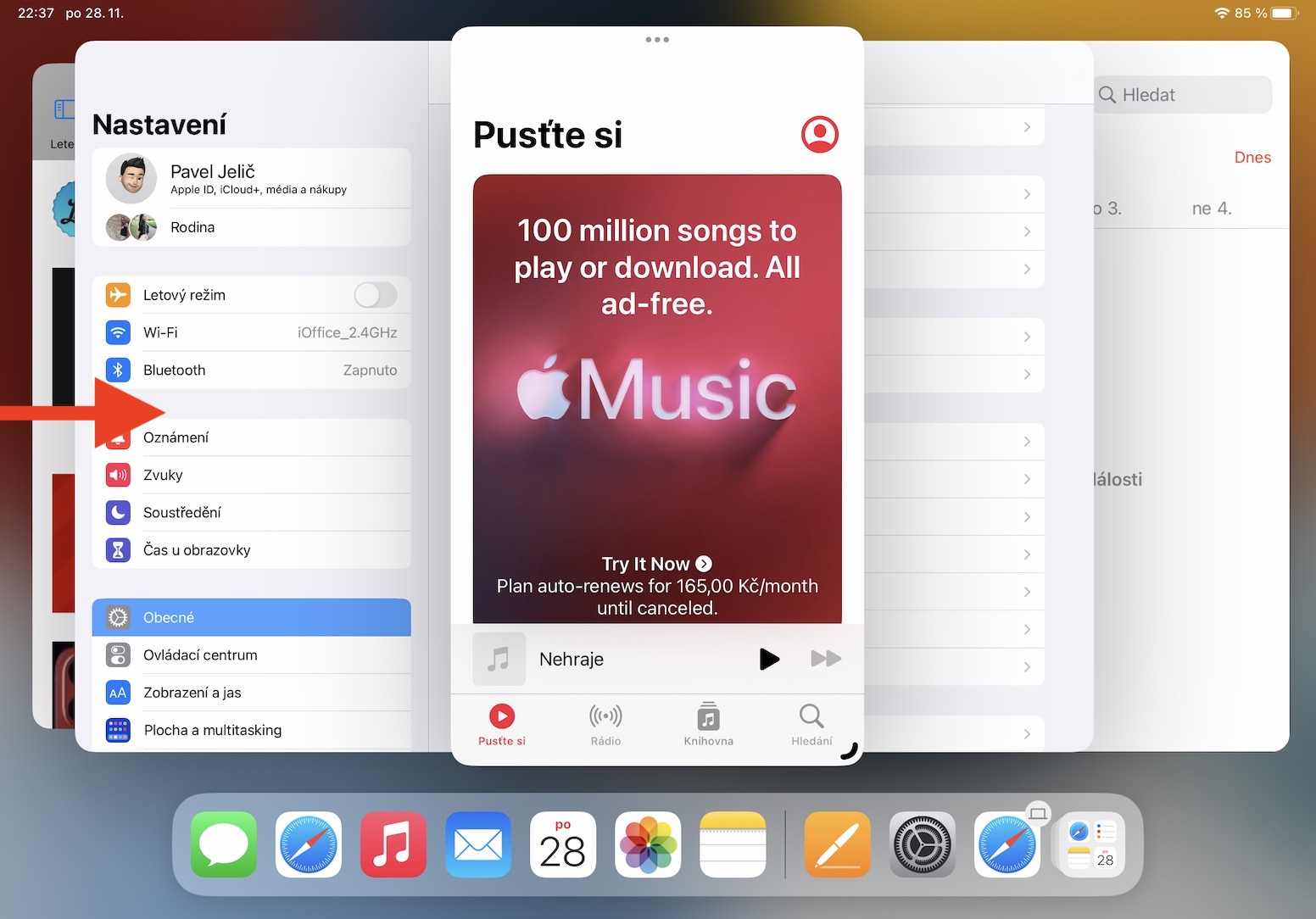 V určité situaci může dojít k tomu, že vám kompletně zmizí levý panel, kde se nachází veškerá okna a aplikace. Pro jeho zobrazení pouze stačí, abyste přejeli prstem z levé hrany displeje směrem doprava. Případně se panel zobrazí vždy, když provedete zmenšení velkého okna. A pokud byste chtěli zobrazit Dock, tak stačí klasicky přejet prstem ze spodní hrany nahoru.