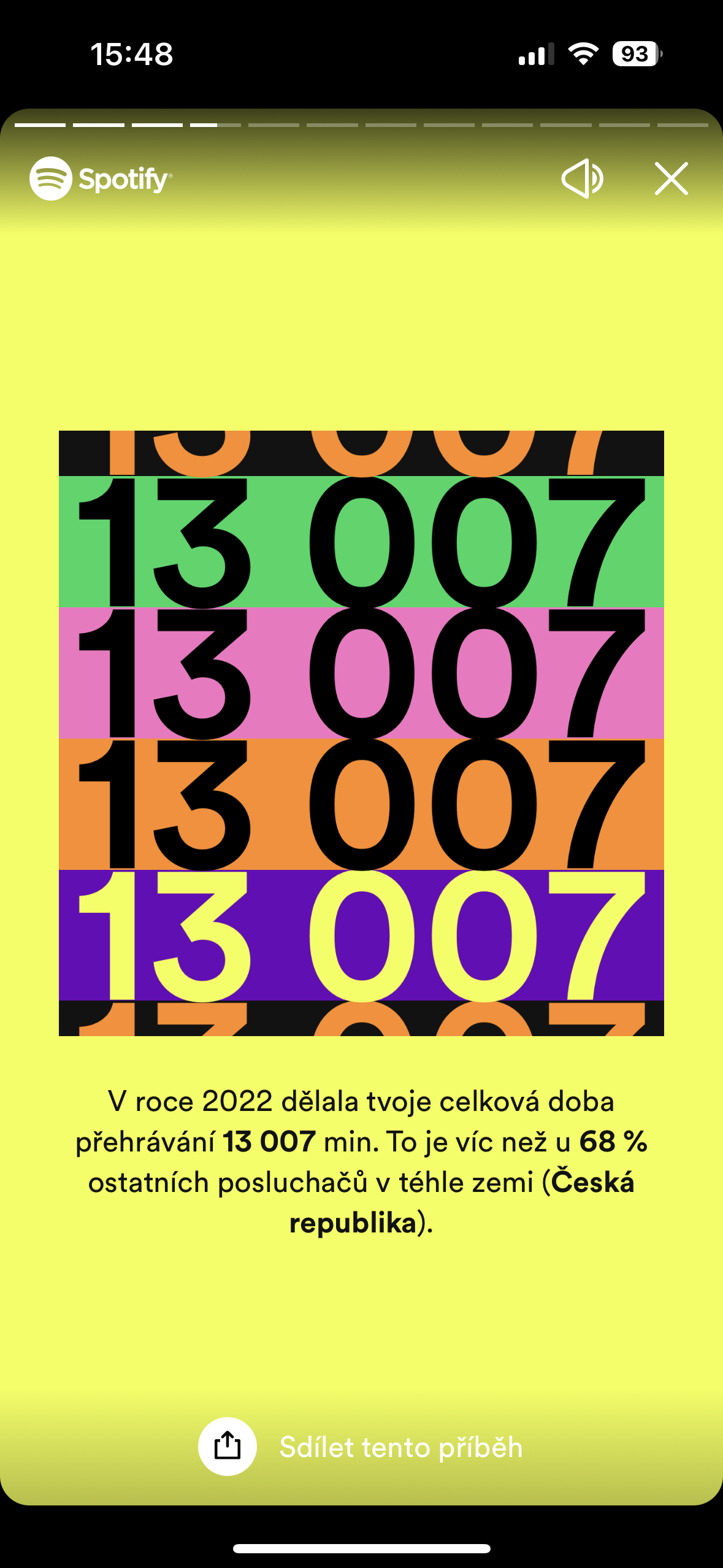 Spotify začalo během dnešního odpoledne uživatelům ukazovat, jaký byl jejich rok 2022 v kostce, respektive, co za uplynulý rok poslouchali. V přehledech nechybí váš nejoblíbenější umělec, nejoblíbenější skladba, počet hodin po které jste Spotify poslouchali, počet hodin poslechu nejoblíbenějšího umělce, počet přehrání nejoblíbenější skladby, počet poslechu Podcastů a samozřejmě také přehled toho, jak jste na tom v porovnání s ostatními uživateli této streamovací platformy. Jako takový menší dárek pak od Spotify dostává každý automaticky vytvořený Playlist, který koresponduje s tím, co jste nejvíce poslouchali a také možnost tyto statistiky přehledně sdílet na sociálních sítích.