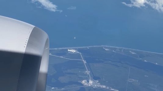 Aboard @United Airlines 220 flying over Cape Canaveral as a SpaceX Falcon 9 lifts off. pic.twitter.com/klSqmbfPHt
