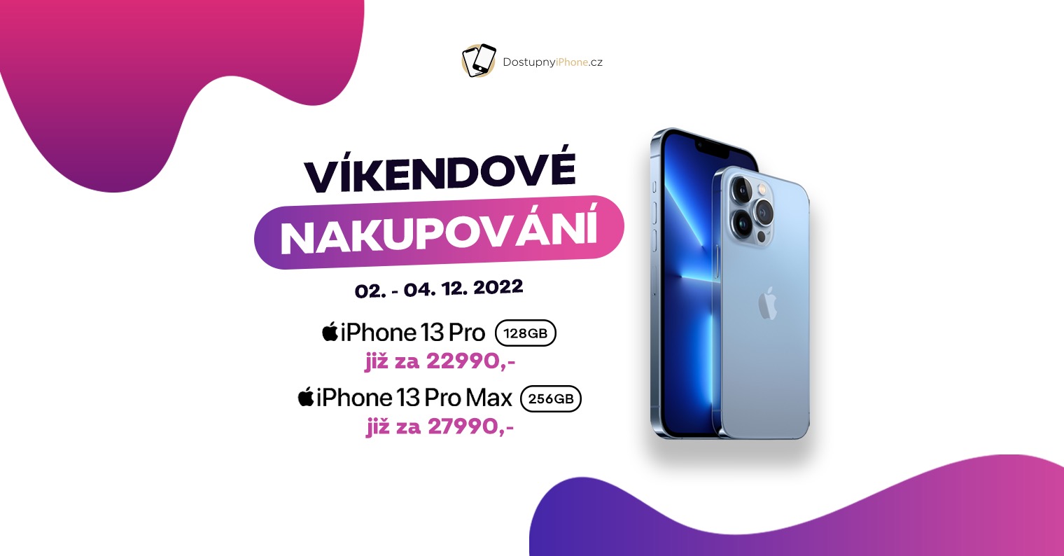 Komerční sdělení: Už jen do dnešní půlnoci trvá Víkendové nakupování na DostupnyiPhone.cz. V této akci můžete koupit výkonné iPhone 13 Pro 128GB a Pro Max 256GB se slevou 5 000 Kč.