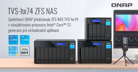 Tisková zpráva: Společnost QNAP® Systems, Inc., přední inovátor v oblasti počítačových, síťových a úložných řešení, představila vysoce výkonnou řadu QuTS hero NAS, TVS-hx74, zahrnující 4pozicový model TVS-h474, 6pozicový model TVS-h674 a 8pozicový model TVS-h874, které obsahují vícejádrové/vícevláknové procesory Intel® Core™ 12. Generace. Zařízení TVS-hx74 s operačním systémem QuTS hero založeným na systému ZFS zajišťuje integritu dat a podporuje inline deduplikaci a kompresi dat na úrovni bloků, snímky téměř bez omezení a SnapSync v reálném čase. Díky rozšiřitelnosti PCIe Gen 4 (až dvojnásobná přenosová rychlost oproti Gen 3), M.2 NVMe SSD cache a konektivitě 2,5GbE řeší TVS-hx74 náročné podnikové výzvy v oblasti úložišť, zálohování, virtualizace a aplikačních serverů.