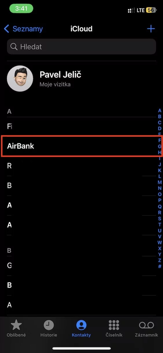 • Prvně se na vašem iPhonu přesuňte do nativní aplikace Kontakty.