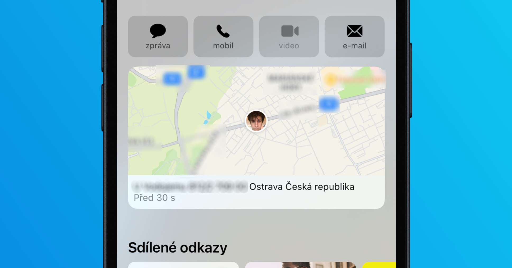 Sdílíte si s některými s uživatelů polohu? Jestliže ano, tak byste měli vědět, že se přímo ve widgetu, pod fotkou konkrétní osoby, nachází adresa aktuálního místa, kde se nachází. Jednoduše tak bez jakékoliv interakce můžete zjistit, zdali už je dotyčný kontakt třeba poblíž vaší polohy apod. V případě, že byste chtěli zobrazit přesnou mapu s polohou, tak stačí na kontakt klepnout, kde už se vám následně mapa s polohou zobrazí. Klepnutím na ni se pak přesunete do aplikace Najít.