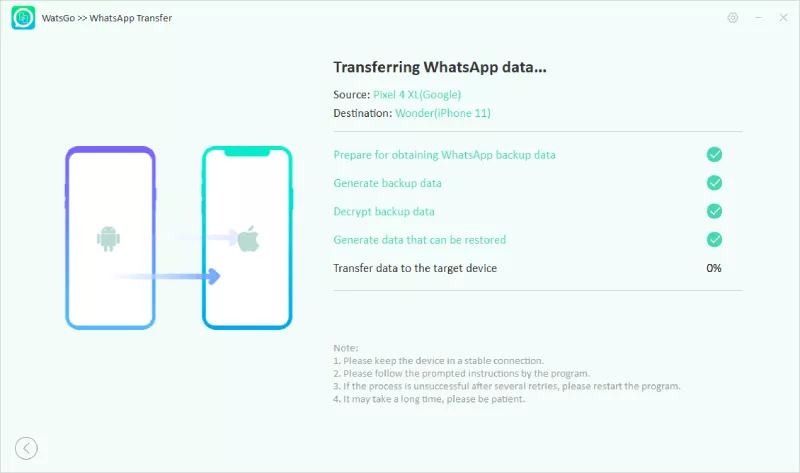 Krok 5: Přenos WhatsApp z Androidu do iPhone kompletní