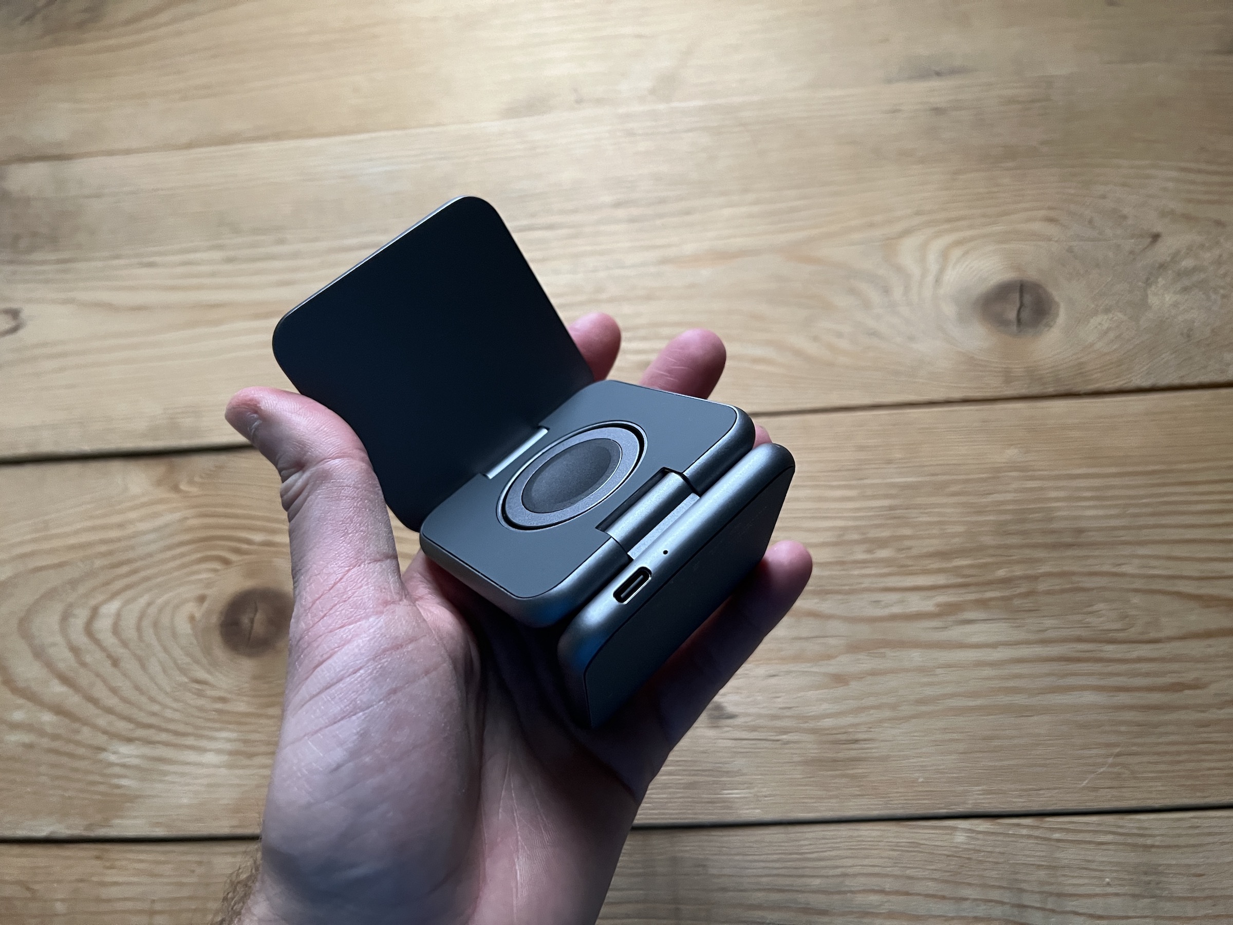 Celé řešení se tedy skládá ze třech částí, kdy každá může nabíjet nějaké zařízení. V případě použití iPhonů s přídomkem Max pak telefon nijak sluchátkům na spodní ploše nevadí i díky tomu, jak je celé řešení flexibilní, a to vzhledem k dvěma přítomným kloubům, které umožní nastavit sklon dle potřeb. Právě s ohledem na flexibilitu nabíječky je ta při svém složení velká jen 68 x 68 mm, vysoká je 23 mm a váží 195 g, takže se snadno vejde do každé kabelky, batohu i zavazadla a dokonce kapsy, aniž by jakkoli překážela a nějak výrazně se pronesla. Pokud využijete přenosné pouzdro (147 x 98 x 53 mm), je to dostatečně pevné, takže nehrozí ani jeho proražení.