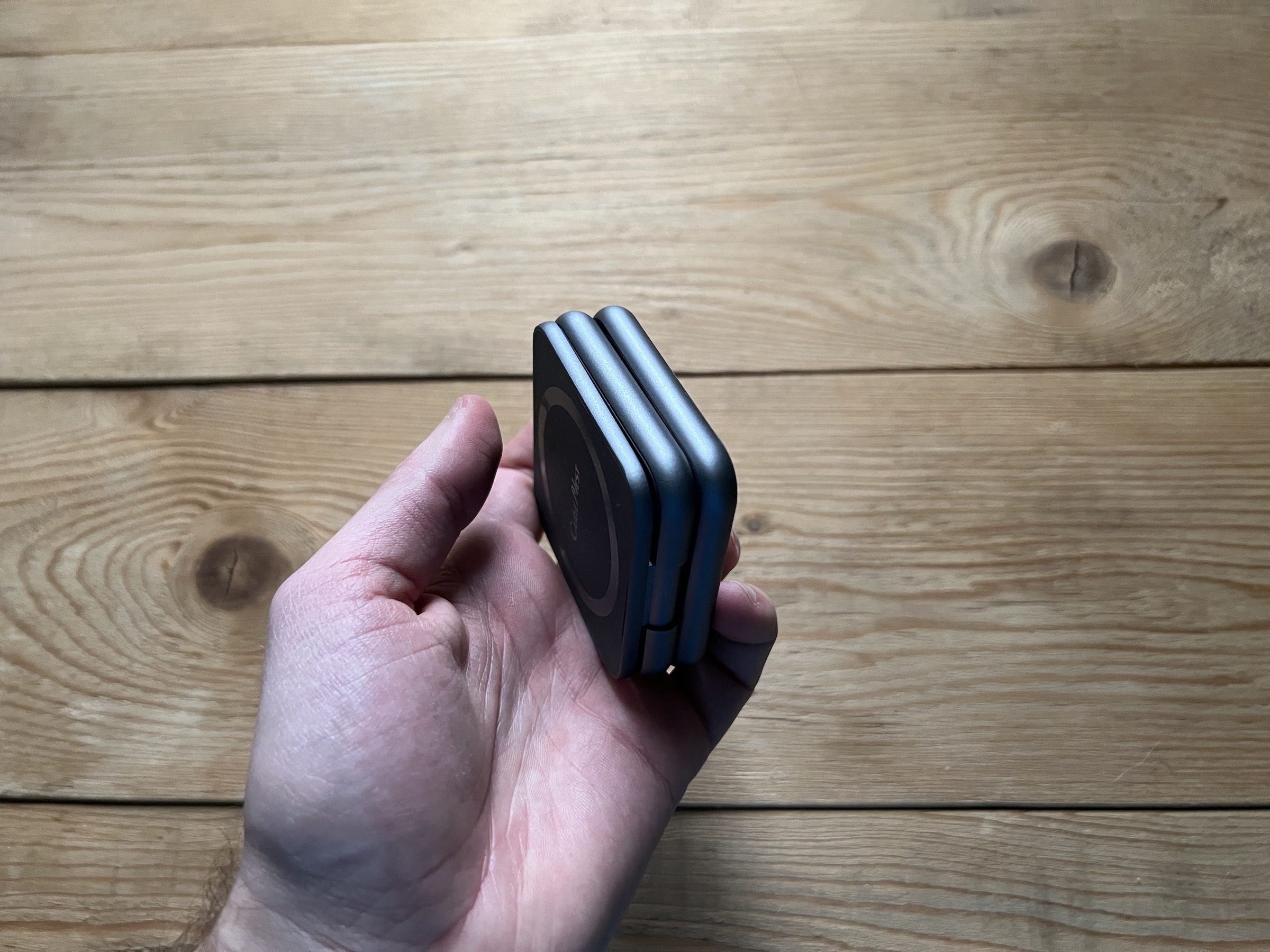 Nabíječka je samozřejmě limitována svými minimálními rozměry, které už prakticky nemohou být ani menší, proto nemůžete při nabíjení iPhonu a Apple Watch vidět displeje obojího, což bude vadit jen pokud byste chtěli na svých Apple Watch kontrolovat čas i v noci. Co se magnetu týče, má ten dokonalou sílu k pohodlné manipulaci s iPhony podporujícími MagSafe, nízké těžiště nabíječky také zaručí, že se nepřevrátí ani u těch největších modelů.