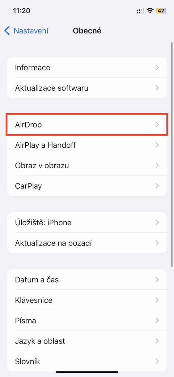 Jak na iPhone změnit nastavení viditelnosti AirDropu