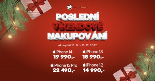 Komerční sdělení: Poslední a zároveň největší Víkendové nakupování před Vánoci je tady! Spoustu tisíc tentokrát ušetříte na iPhone 14, 13 a 12, a taky na modelu 13 Pro. A doručení do Vánoc? To při objednávce tento víkend máte garantované!