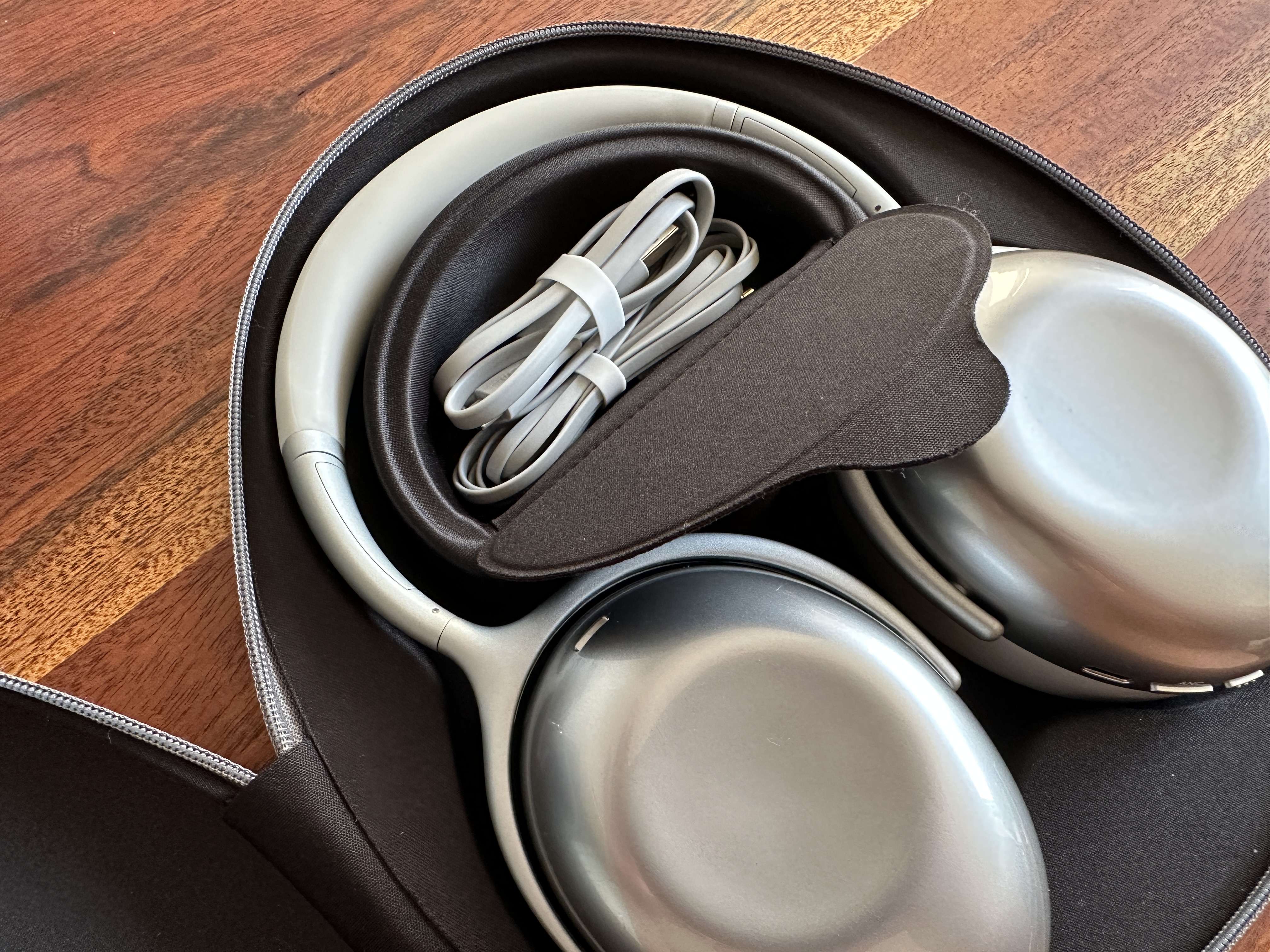 Co se technických specifikací týká, nabízí sluchátka již zmíněné ANC a to jak v klasickém režimu, kdy tlumí vše, tak i v režimu Smart ANC, kdy tlumí pouze ruchy a vnější hluk. Sluchátka nabízí 40mm dynamický měnič s plným rozsahem, který je zodpovědný za precizní zvuk. Ten je možné poslouchat díky kodeku Qualcomm aptX HD v rozlišení 24bit/48kHz, což je víc, než kolik nabízí například Hifi Pro u Tidalu nebo Apple Music Lossless. O bezdrátový přenos se stará Bluetooth 5.1 a pokud chcete se sluchátky telefonovat, nechybí ani cVc, což je funkce Clear Voice Capture pro kvalitnější hovor. Sluchátka jsou k dispozici v barvách Silver Grey a Charcoal Grey s tím, že já jsem dostal práve Silver Grey. Co se délky poslechu týká, pak je to až 40 hodin při střední hlasitosti a bez aktivního ANC, při aktivním ANC počítejte o pár hodin méně. S tím, že vám však stačí 15 minut nabíjení k tomu, abyste mohli dalších 8 hodin poslouchat hudbu. Co se mi opravdu strašně líbí, je fakt, že sluchátka fungují v případě, kdy máte Mac a iOS stejně, jako by je vyráběl sám Apple s výjimkou animací. Ovládání je naprosto přesné a připojování je stejně rychlé jako u AirPods.