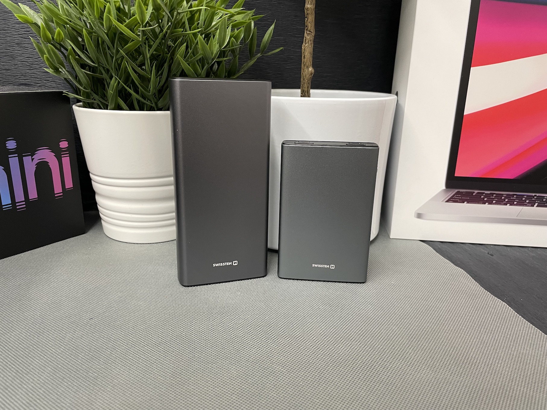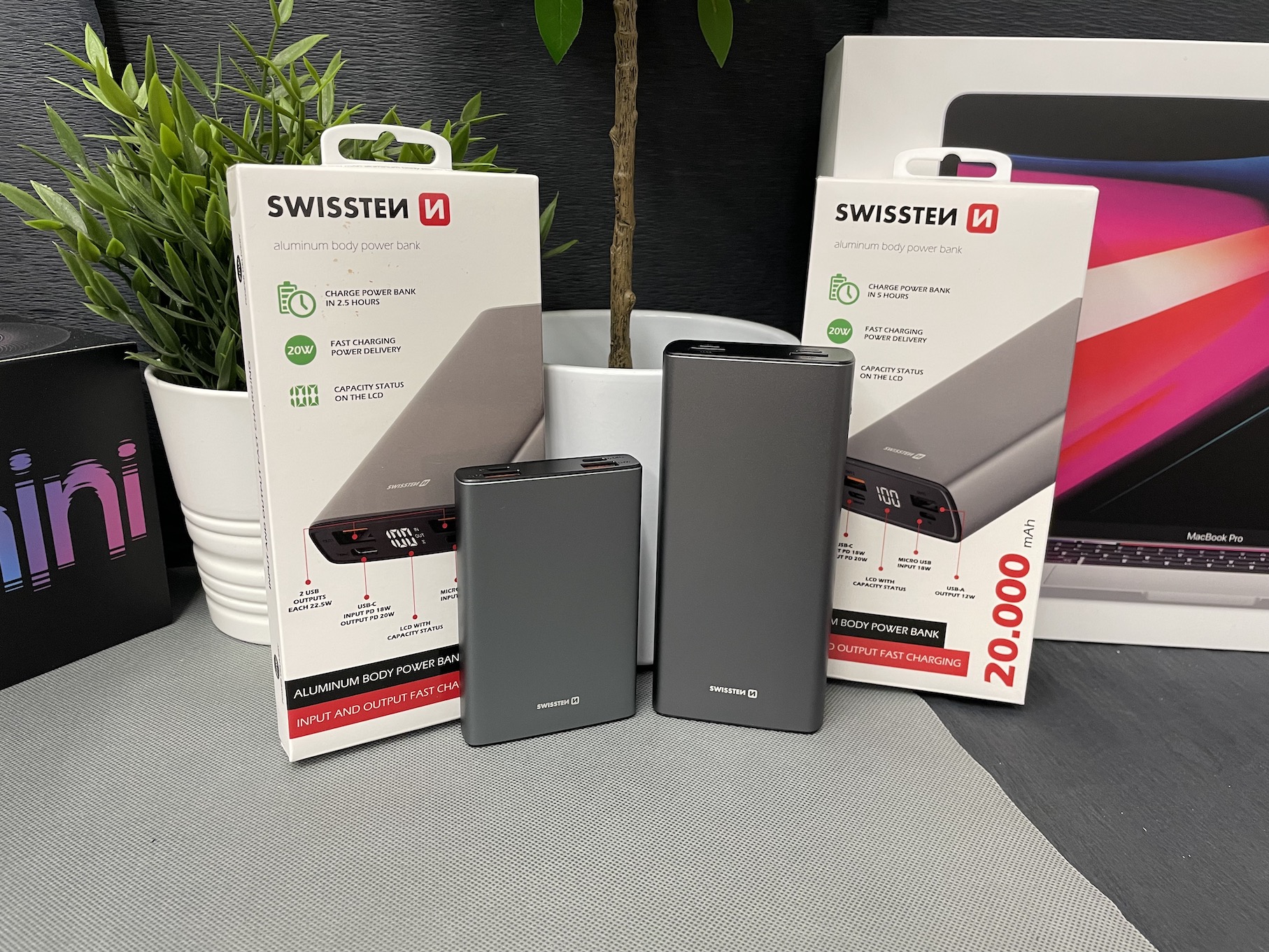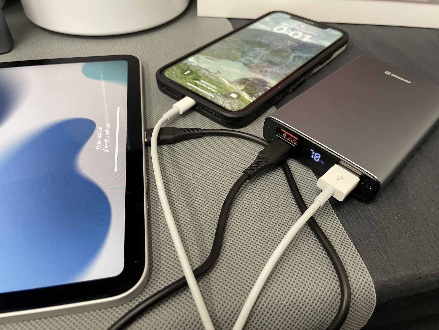 V rámci osobní zkušenosti se chci ještě vrátit ke zmíněnému displeji, který mě upřímně překvapil. Ten totiž dokáže kromě aktuální kapacity powerbanky zobrazit také informaci o tom, zdali je aktuálně zařízení nabíjení pomocí Power Delivery (objeví se ikona PD), díky čemuž víte, že dochází k rychlonabíjení. Jinak jsem se během testování nesetkal s žádnými problémy, které by nějakým způsobem mé nadšení z powerbank Swissten Aluminium Body omezily. Naprosto parádně se hliníkový design vyjímá třeba právě vedle MacBooku či iPadu, jelikož obě dvě tato zařízení taktéž využívají primárně hliník. Byť je tedy pravda, že z hlediska zbarvení jsou powerbanky Swissten Aluminium Body spíše vesmírně šedé, potažmo možná ještě o něco tmavší. To je ale takový malý a nepodstatný detail, který nijak neovlivňuje funkčnost. Zmíněné powerbanky se při nabíjení nijak zásadně nezahřívají a zkrátka fungují tak, jak se od nich očekává.