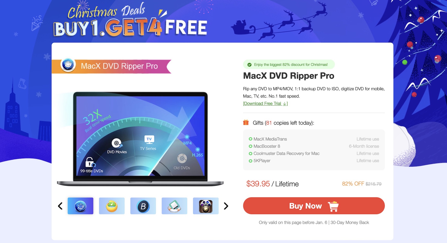 Jak už jsem zmínil výše, tak MacX DVD Ripper Pro můžete aktuálně pořídit s až 82% slevou, a to v rámci speciální vánoční akce, která se zase dlouhou dobu nebude opakovat. Konkrétně je k dispozici balíček opravdu zajímavých aplikací, ve kterém se nachází kromě MacX DVD Ripper Pro také MacX MediaTrans, MacBooster 8, Coolmuster Data Recovery for Mac a 5K Player. Celý balíček těchto pěti aplikací můžete pořídit za 39.95 dolarů s tím, že původně by vás vyšel na 215.79 dolarů, což udává 82% slevu. Ke všem aplikacím získáte doživotní licenci, takže se nejedná o předplatné například na rok, jak je u podobných aplikací často zvykem. A pokud si ještě nejste pořízením jistí, tak si můžete stáhnout bezaplatnou zkušební verzi MacX DVD Ripper Pro, ve které si vše vyzkoušíte a následně se rozhodnete.