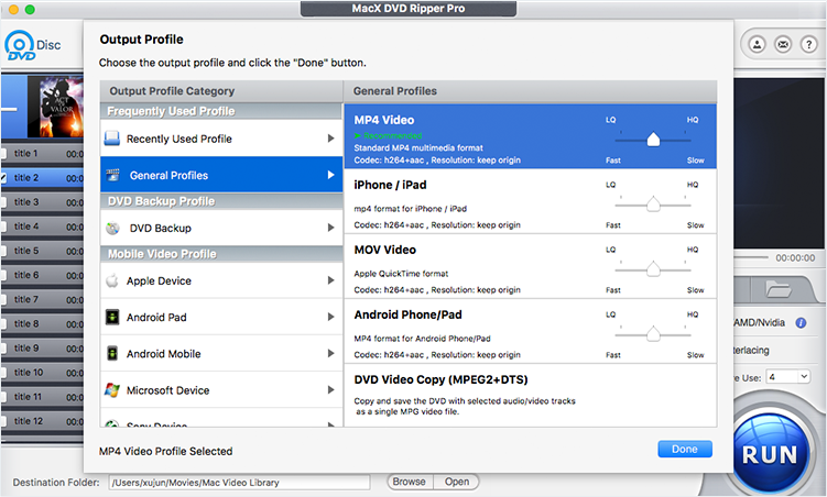 Jak už jsem zmínil, tak MacX DVD Ripper Pro dokáže při převodu DVD do MP4 využít také hardwarovou akceleraci třetího stupně. Díky tomu je konkrétně až 47x rychlejší oproti konkurenci. Hardwarová akcelerace konkrétně zaručuje to, že se k převádění bude využívat nejenom CPU, ale také GPU, která zůstává v konkurenčních aplikacích nečinná, a proto jinde převod trvá tak dlouho. Výsledný MP4 soubor, který s využitím MacX DVD Ripper Pro získáte, pak může být až o 80 % menší, a to se zachováním totožné 1:1 kvality. Při exportu si pak můžete vybrat z několika různých formátů, kromě MP4 nechybí třeba HEVC, H.264, MOV, M4V, QT, AVI, FLV, MP3 a další, případně nechybí ani možnost pro převod do formátu pro iPhone, iPad, Mac, Apple TV, Android, PSP, Xbox a další. Mimo to byste měli vědět, že si tato aplikace poradí také s „uzamknutými“ DVD, na kterých je nějakým způsobem chráněn obsah, dále také s nestandardními a poškozenými DVD disky a problém jí nedělají ani DVD určená pro nějaký region. Ať už tedy dáte MacX DVD Ripper Pro jakýkoliv disk, tak si s ním poradí, pokud teda nebude zlomený napůl.
