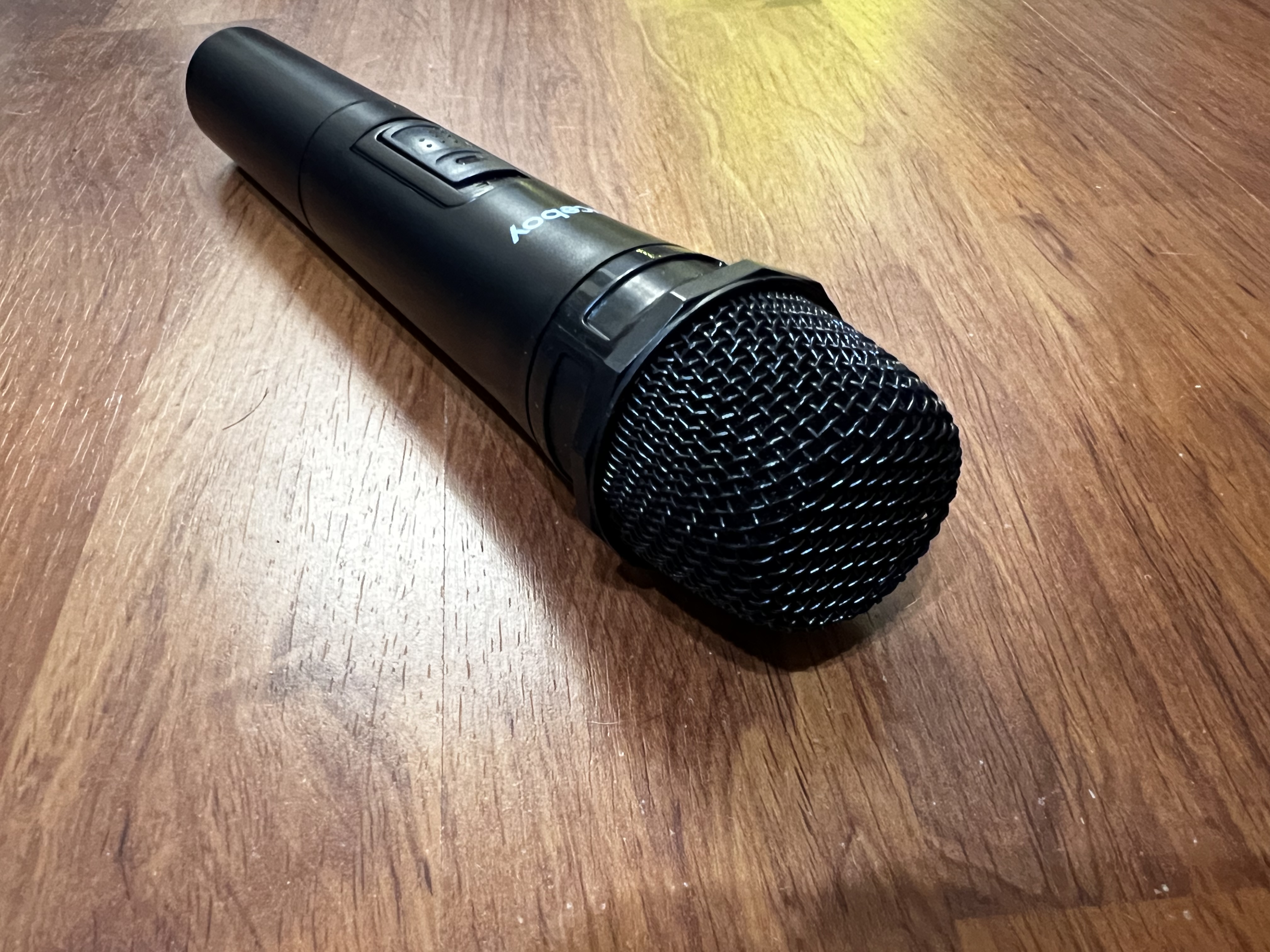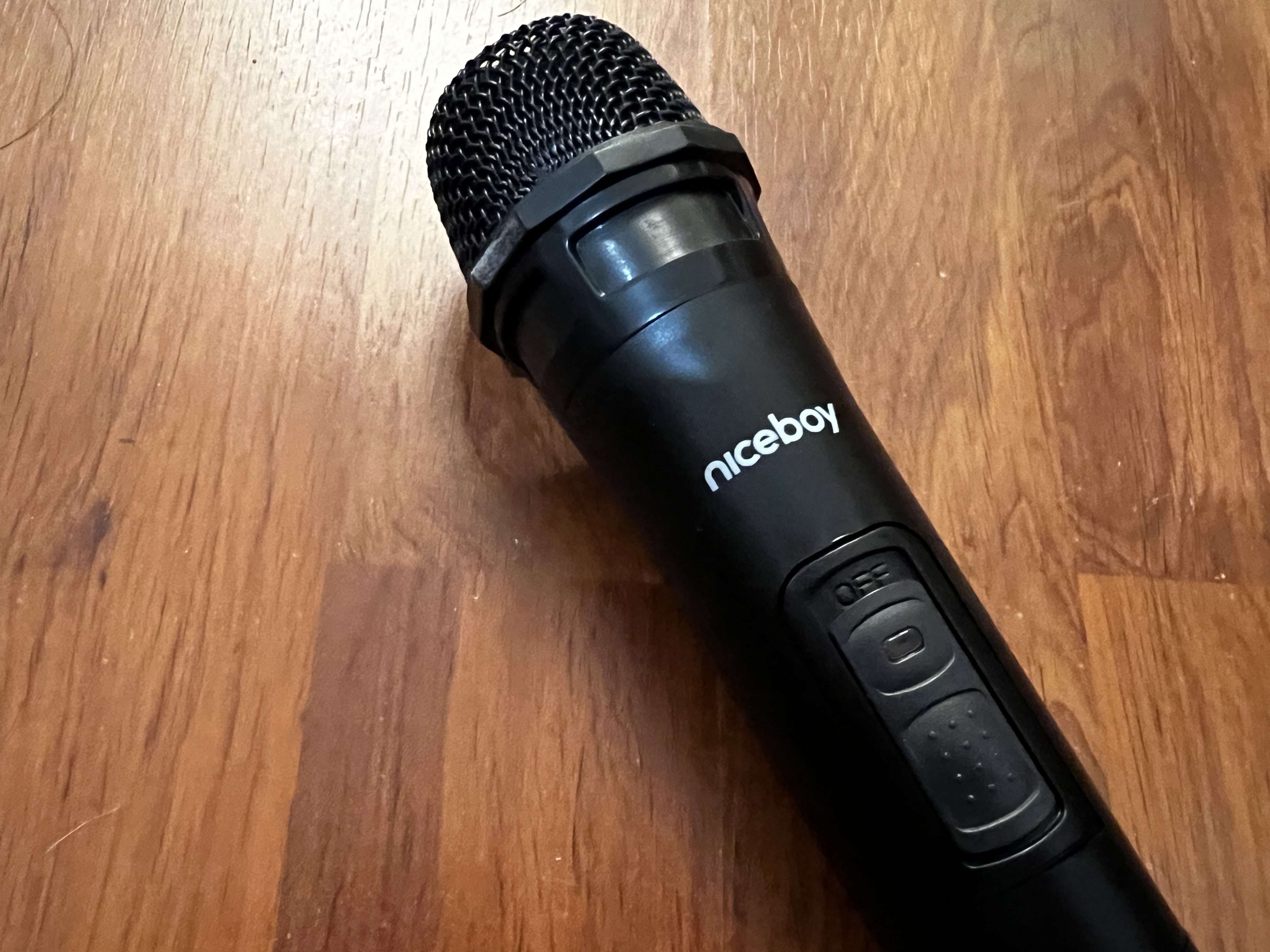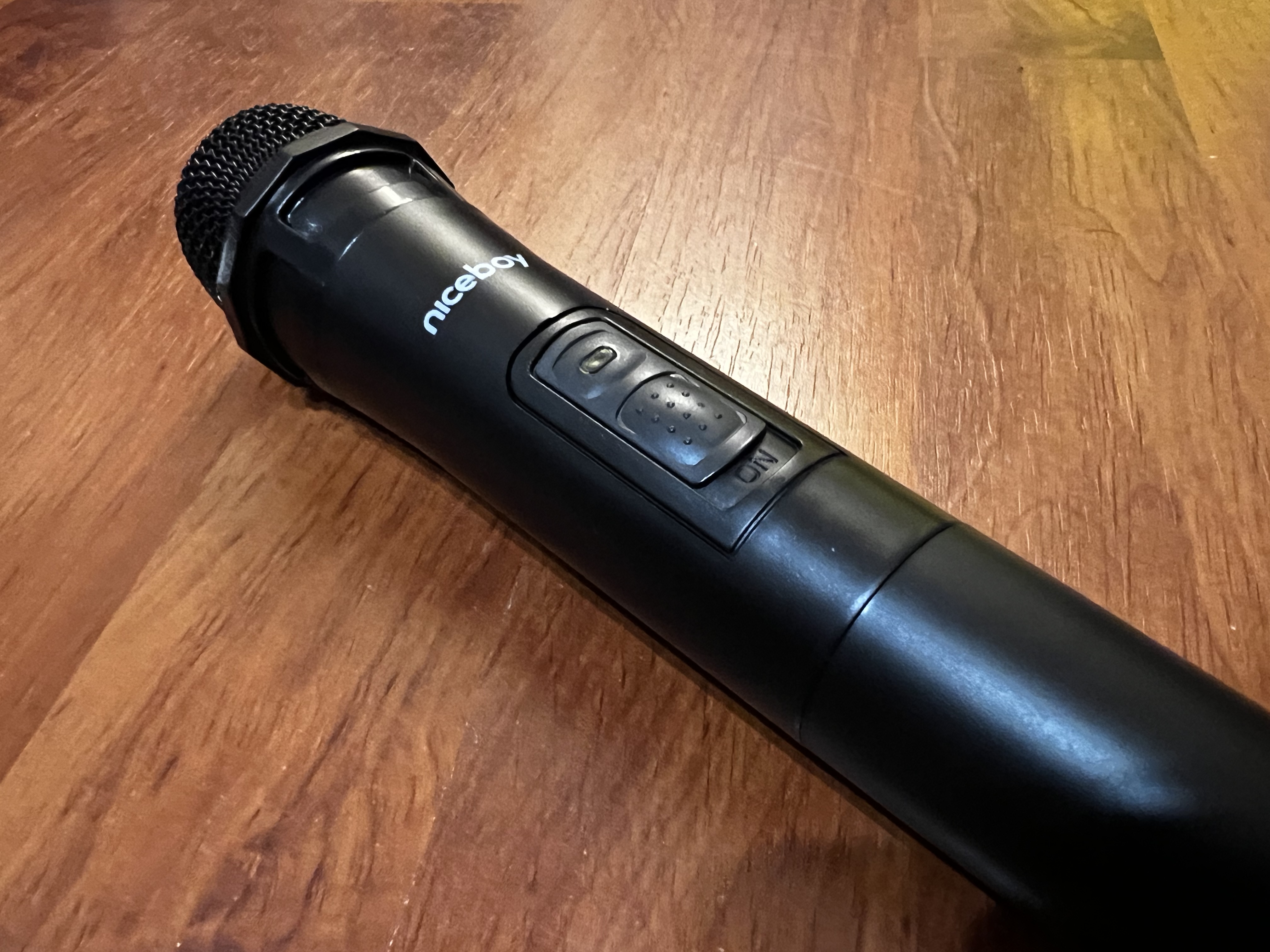 K reproduktoru je, jak uvádím výše, bezdrátový mikrofon. Z reproduktoru se tedy rázem stává nástroj pro vaše karaoke, což je opravdu skvělé (zvláště po pár skleničkách). Na mikrofon si ale musíte zvykat. Zvuk bere skutečně dobře a pokud ho budete mít blízko úst, naprosto přehlušíte hudbu, a to i za předpokladu, kdy hlasitost mikrofonu máte nastavenou na nejnižší. Je tedy třeba nalézt optimální vzdálenost. Zároveň je třeba být od reproduktoru několik metrů, neboť jinak se setkáte s nepříjemným zrněním. Veškeré neduhy lze ale napravit. Mikrofonů je na trhu několik a jiný seženete za pár stovek, byť bude drátový. Abych to shrnul. Na mluvené slovo je skvělý, pokud ale chcete zpívat a u toho se například pohybovat, těžko (zvláště mírně pod vlivem) udržíte mikrofon od úst v takové vzdálenosti, aby byl poslech příjemný.