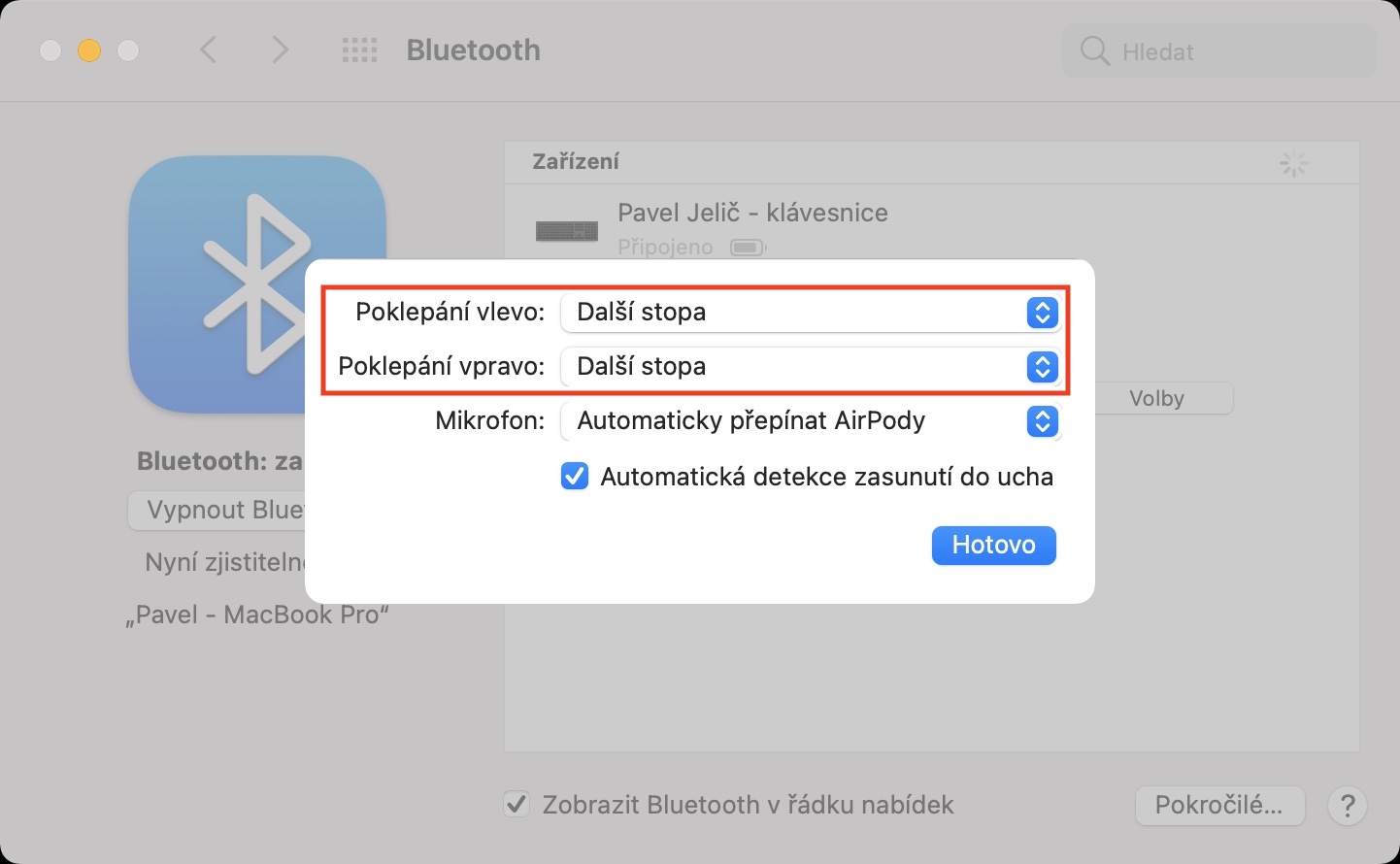 Ve výchozím nastavení dojde u nových AirPodů po poklepání k aktivaci hlasové asistentky Siri. Pokud chcete tuto akci změnit, spusťte na spárovaném iPhonu Nastavení -> Bluetooth, kde u názvu vašich AirPodů klepnete na ⓘ. Zde poté můžete přizpůsobit jednotlivé akce po poklepání nebo stisku.