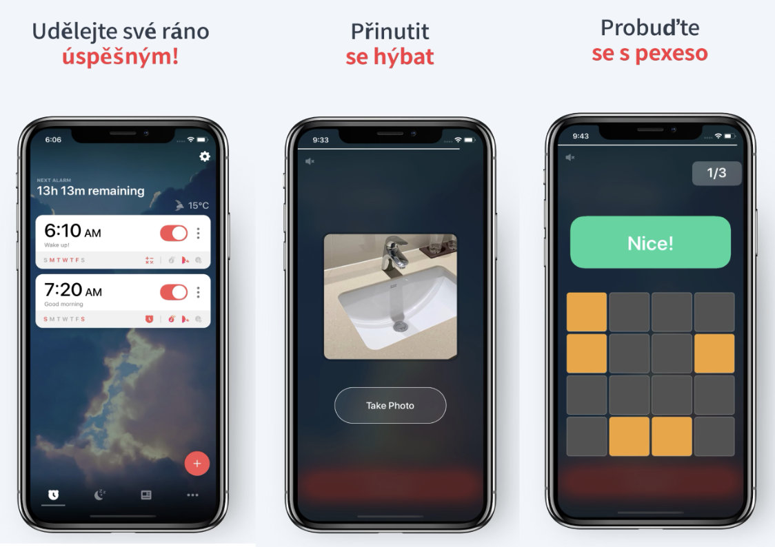 V rámci operačního systému iOS najdete poměrně jednoduchý budík, který je součástí aplikace Hodiny. Bohužel pro někoho může být z hlediska možností lehce nedostačující, kvůli čemuž je nutné se po řešení podívat trošku někde jinde. V takovém případě na vás v App Storu čeká aplikace Alarmy. Ta možnosti buzení posouvá na úplně novou úroveň a výrazně tak překračuje schopnosti nativního řešení. V aplikaci si totiž můžete nastavit, aby se budík vypnul až po splnění některého úkolu. Může se přitom jednat o dřepy, výpočet snadných matematických příkladů, naskenování čárového kódu některého z produktů a podobně. Právě v tom tkví hlavní výhoda. Pokud máte problém se ráno dostat z postele, stačí si nastavit, aby se budík deaktivoval načtením kódu ze zubní pasty – díky tomu vás tak donutí vstát a dojít rovnou do koupelny. Appka je k dostání zcela zdarma, avšak připlatit si můžete za předplatné, které vám odemkne řadu dalších možností. Ve finále totiž appka také nabízí klidné zvuky pro snadné usnutí, reporty vašeho vstávání a mnoho dalších výhod.