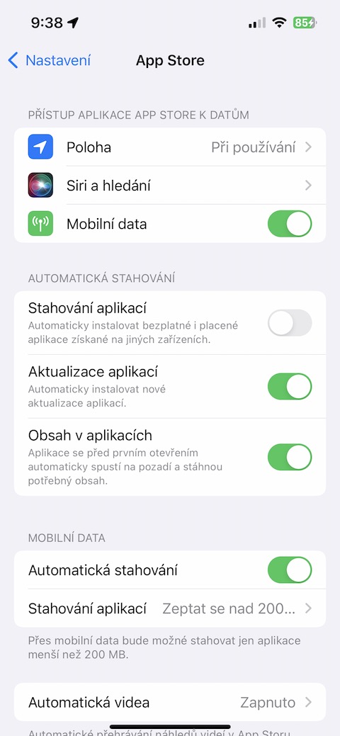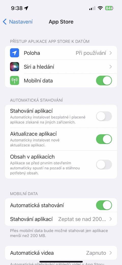 Určitě znáte ten pocit, kdy si stáhnete novou aplikaci, ale před jejím prvním spuštěním musíte netrpělivě čekat, až se postupně postahuje její obsah do vašeho iPhonu. V nových verzích operačního systému iOS máte možnost aktivovat funkci, která se postará o to, že se každá nová aplikace bezprostředně po svém stažení z App Store spustí na pozadí a začne okamžitě stahovat potřebný obsah. Jakmile budete chtít danou aplikaci poprvé spustit, bude vše potřebné již připravené. Pro aktivaci automatického stahování obsahu spusťte na iPhonu Nastavení -> App Store, a v sekci Automatická stahování aktivujte položku Obsah v aplikacích.