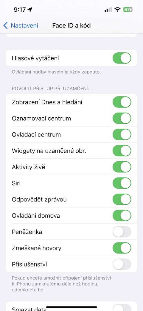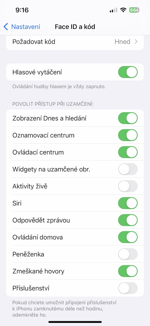 Mezi novinky v operačním systému iOS 16, potažmo iOS 16.2, patří živé aktivity a widgety na zamčené obrazovce iPhonu. Zobrazení obsahu widgetů a živých aktivit můžete uzamknout, takže příslušné informace budou viditelné až na základě ověření přes Face ID. Pro aktivaci tohoto nastavení spusťte na iPhonu Nastavení -> Face ID a kód, kde v sekci Povolit přístup při uzamčení deaktivujete položky Aktivity živě a Widgety na uzamčené obrazovce.