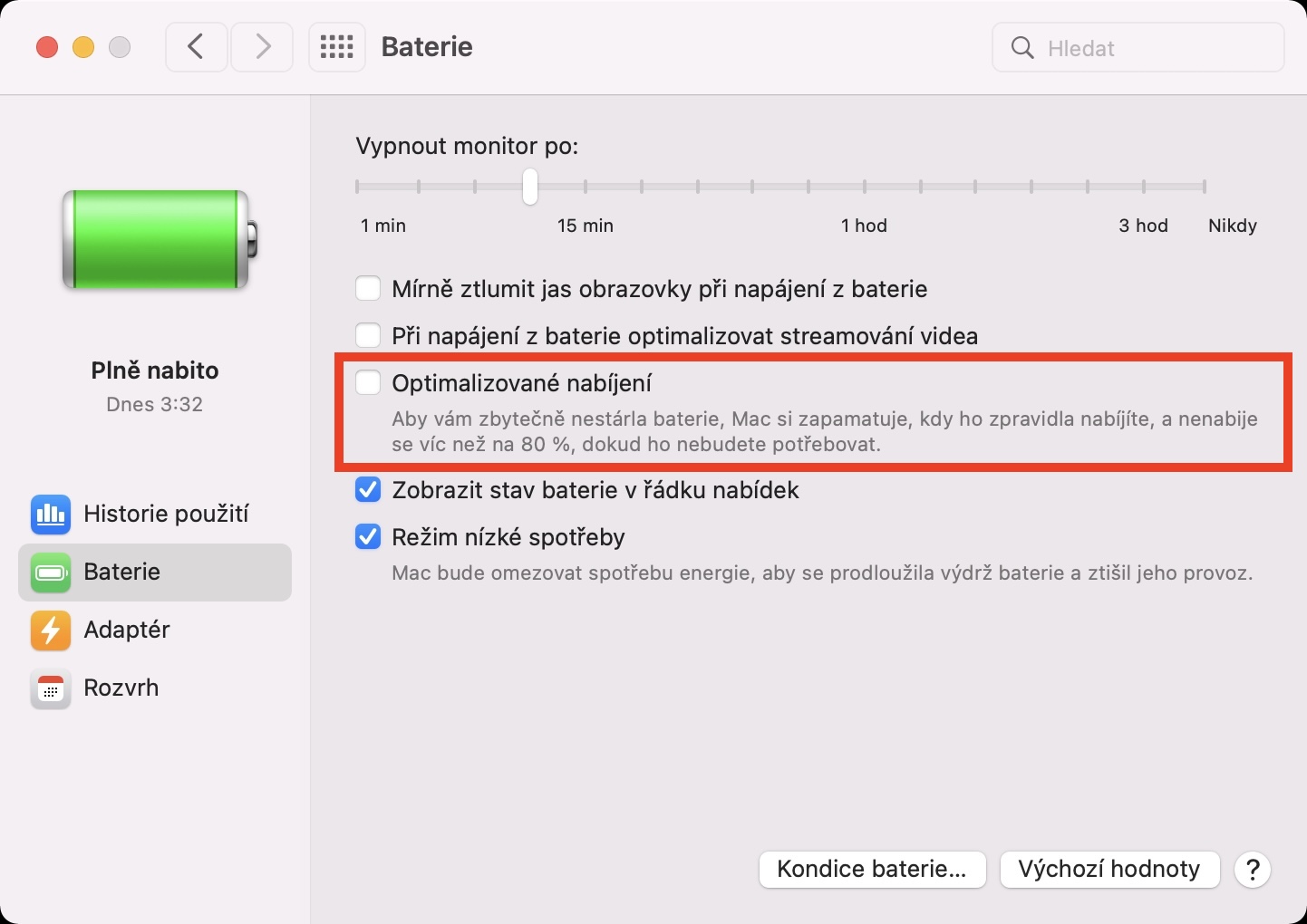 Již před nějakou dobou představil Apple na svých zařízeních funkci optimalizovaného nabíjení baterie. V případě, že tuto funkci aktivujete, tak by měla zamezit nabití baterie na více než 80 %, což je ideální pro prodloužení životnosti baterie. Avšak pravdou je, že optimalizované nabíjení u většiny uživatelů spíše nefunguje, jelikož je zbytečně komplikované. Aby vůbec došlo k omezení nabíjení na 80 %, tak si prvně systém musí vytvořit jakési schéma toho, kdy zařízení nabíjíte. K omezení pak spíše výjimečně dojde pouze tehdy, pokud Mac nabíjíte pravidelně a vždy ve stejný čas – stačí se jen lehce vychýlit a optimalizované nabíjení opětovně přestává fungovat. Součástí funkce je totiž taktéž automatické dobití posledních 20 % do „stovky“, ke kterému má dojít těsně před odpojením zařízení z napájení. Existuje ale řešení, které uživatelům s tímto dokáže pomoci – na našem magazínu už jsme vám ho představili a jmenuje se AlDente.