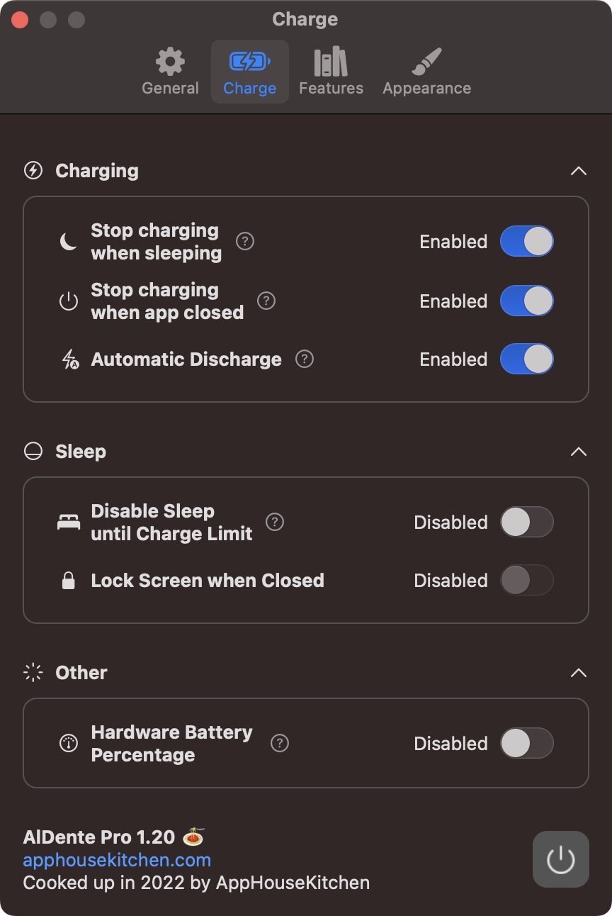 Aplikace AlDente velmi jednoduše a stručně řečeno dokáže zastavit nabíjení na 80 %, popřípadě na jiných procentech, a to s tím, že se neptá na okolnosti a netvoří si žádné zbytečné schéma. Prostě si nastavíte, kdy se má nabíjení zastavit a hotovo – k zastavení skutečně dojde, ať už bude situace jakákoliv. Tato funkce se tak hodí především uživatelům, kteří mají Mac stále připojený k napájení a nechtějí si ničit baterii tím, že její nabití zůstává dlouhodobě na 100 %. Samozřejmě ale AlDente využijí i všichni ostatní uživatelé, kterým optimalizované nabíjení nefunguje a chtějí se o baterii svého Macu starat. Aplikace AlDente je pro pouhé omezení nabíjení k dispozici naprosto zdarma, čímž rozhodně většinu z vás potěším. Osobně tuto aplikaci využívám již několik let a již na několikátém Macu s tím, že z vlastní zkušenosti mohu potvrdit její funkčnost a výrazné prodloužení životnosti baterie.