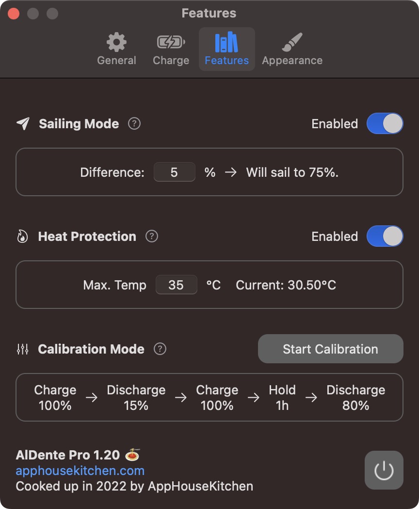 Nejdůležitější jsou ale samozřejmě funkce, které ovlivňují přímo nabíjení. Nastavit si můžete například to, aby se nabíjení automaticky zastavilo v režimu spánku, případně lze také nastavit automatické vybití v případě, že dojde k nabití na vyšší než zvolenou kapacitu. Dále můžete nastavit, aby aplikace zobrazila a pracovala se skutečnou kapacitu baterie, která se odvíjí z hardwarových informací zařízení. Zmínit určitě musím také ochranu proti přehřátí, kdy si zvolíte maximální teplotu baterie, při které se nabíjení automaticky přeruší a započne opětovně až po ochlazení. Zkrátka a jednoduše, pokud chcete zajistit, aby baterie vašeho Macu vydržela co možná nejdéle, je AlDente naprostou povinností, kterou musíte mít. Rozhodně doporučuji si ji vyzkoušet zdarma, a pokud se vám bude líbit, určitě vývojáře podpořte, jelikož aplikace stojí za to. Sáhnout můžete buď po ročním předplatném za 280 korun, anebo lze využít jednorázový nákup za 590 korun.