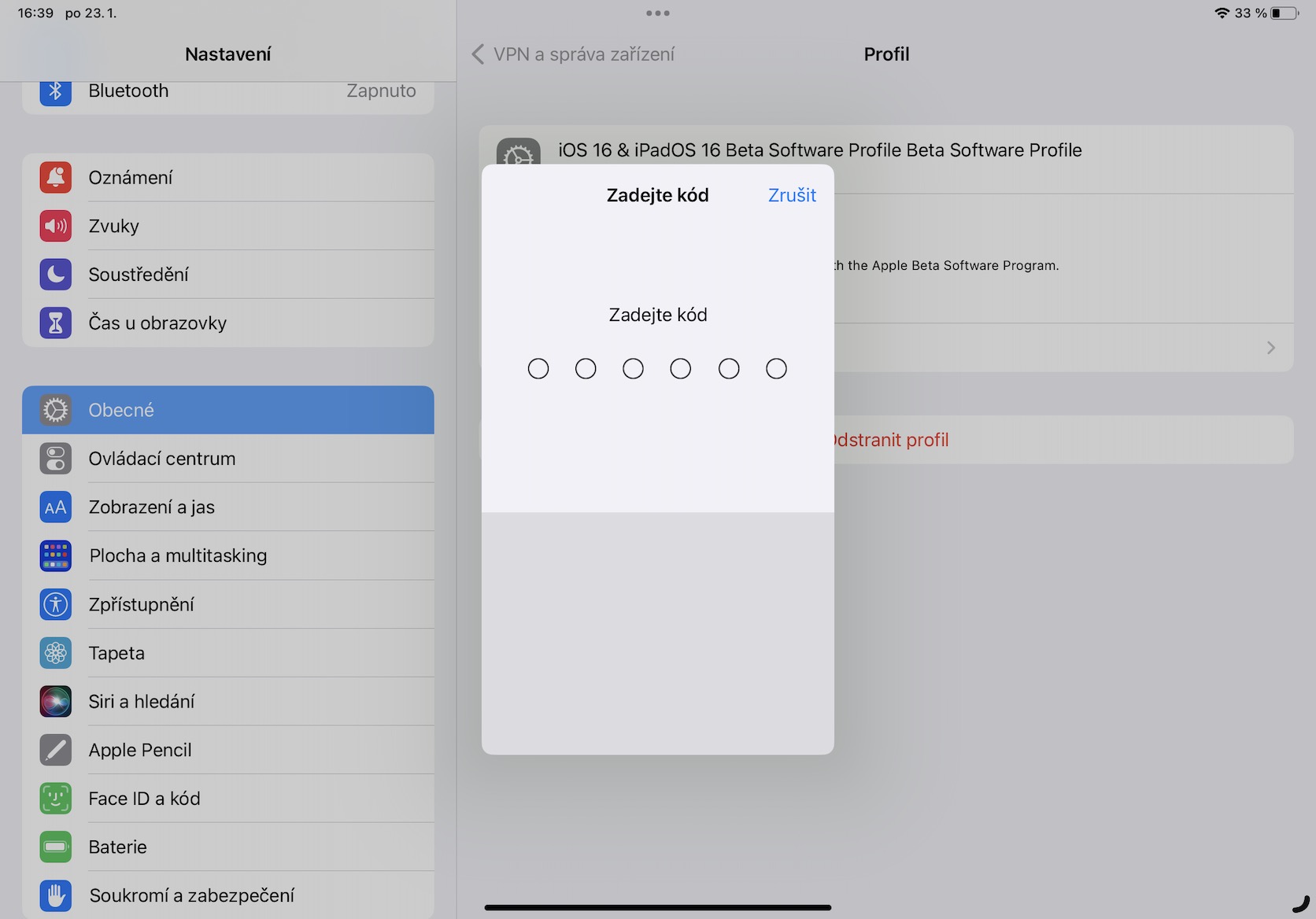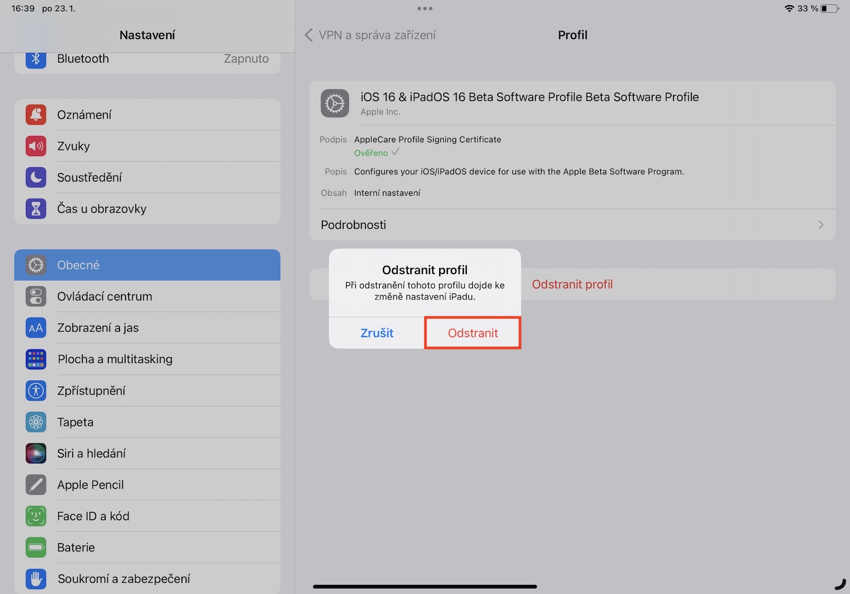 6. Jakmile tak učiníte, klepněte dole na Odstranit profil.