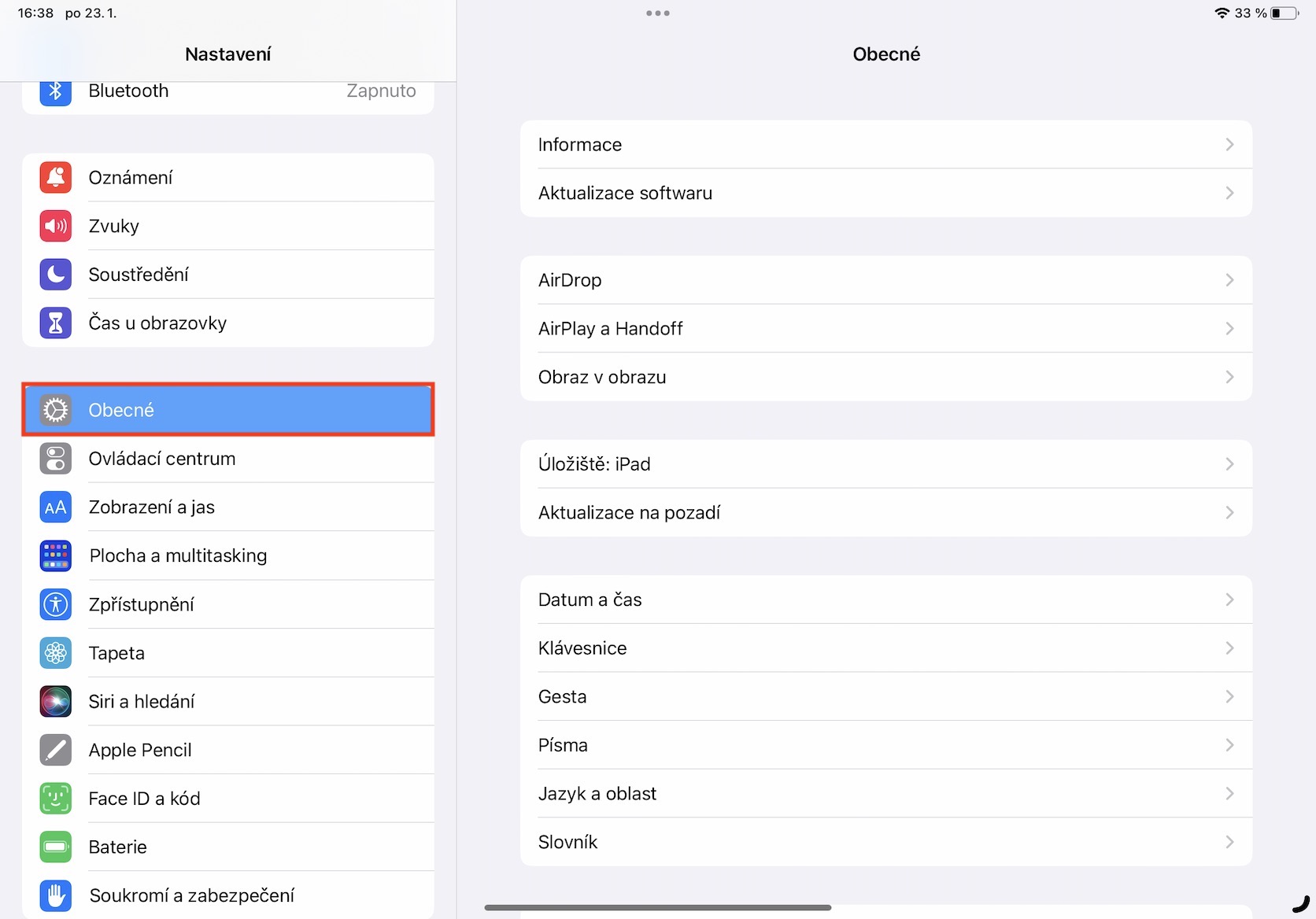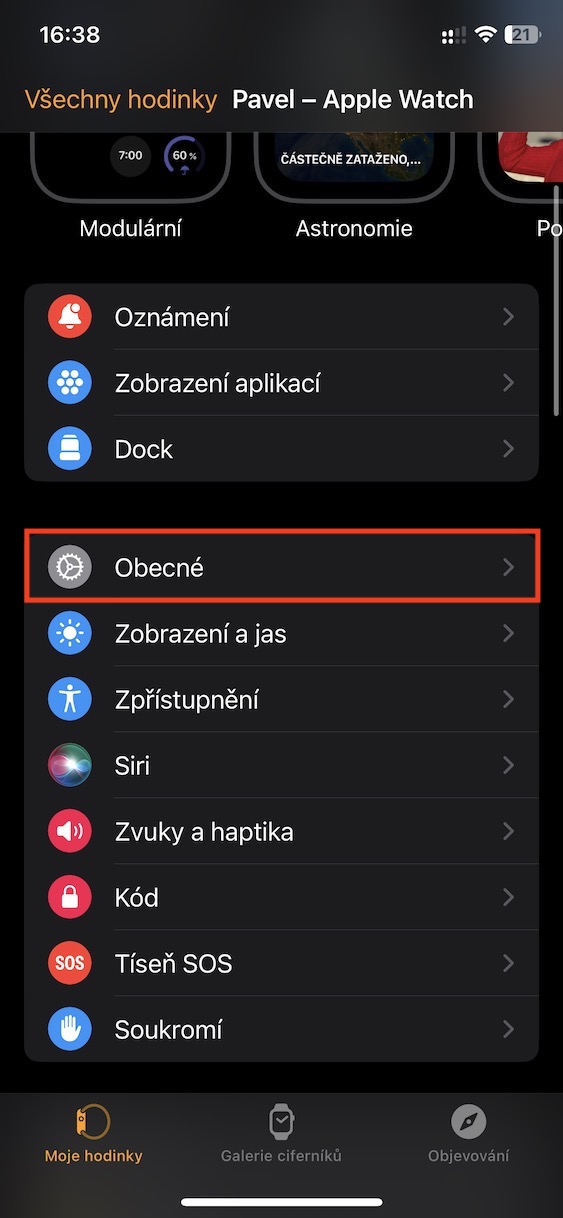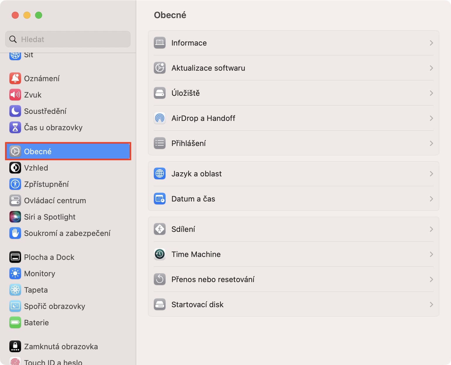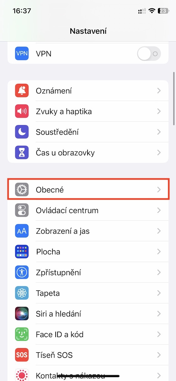 2. Zde níže přejděte do sekce s názvem Obecné.