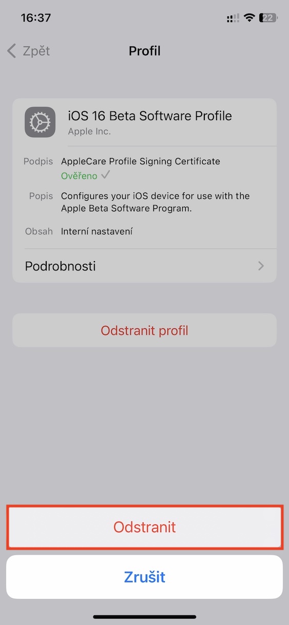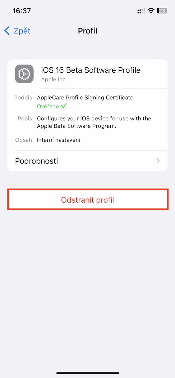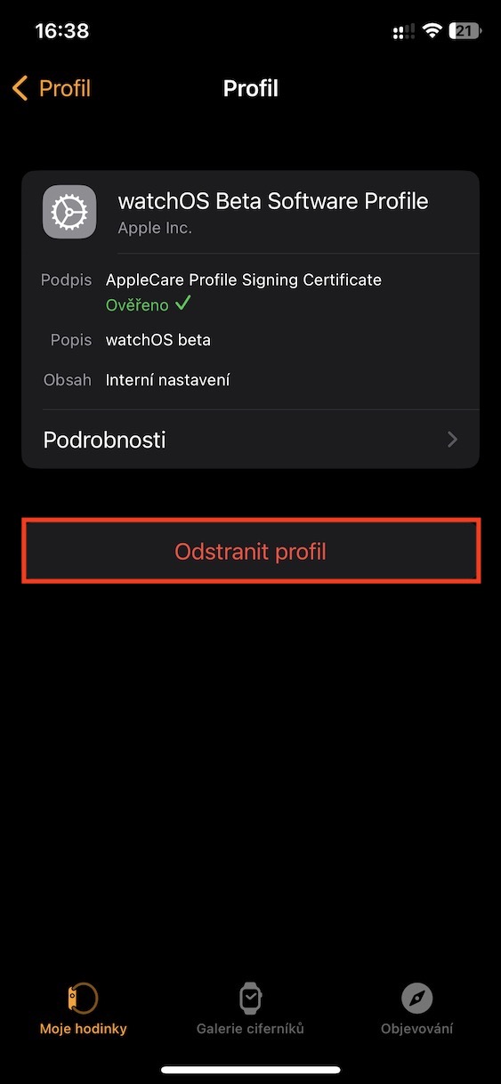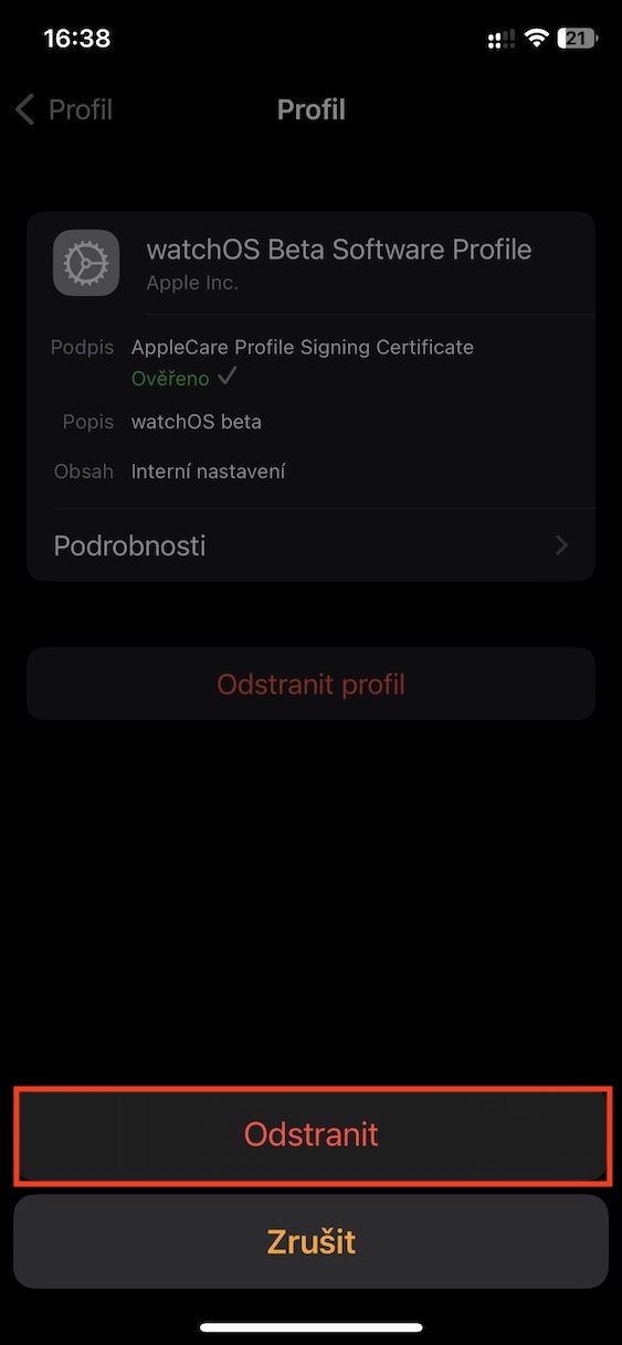 5. Jakmile tak učiníte, klepněte dole na Odstranit profil.