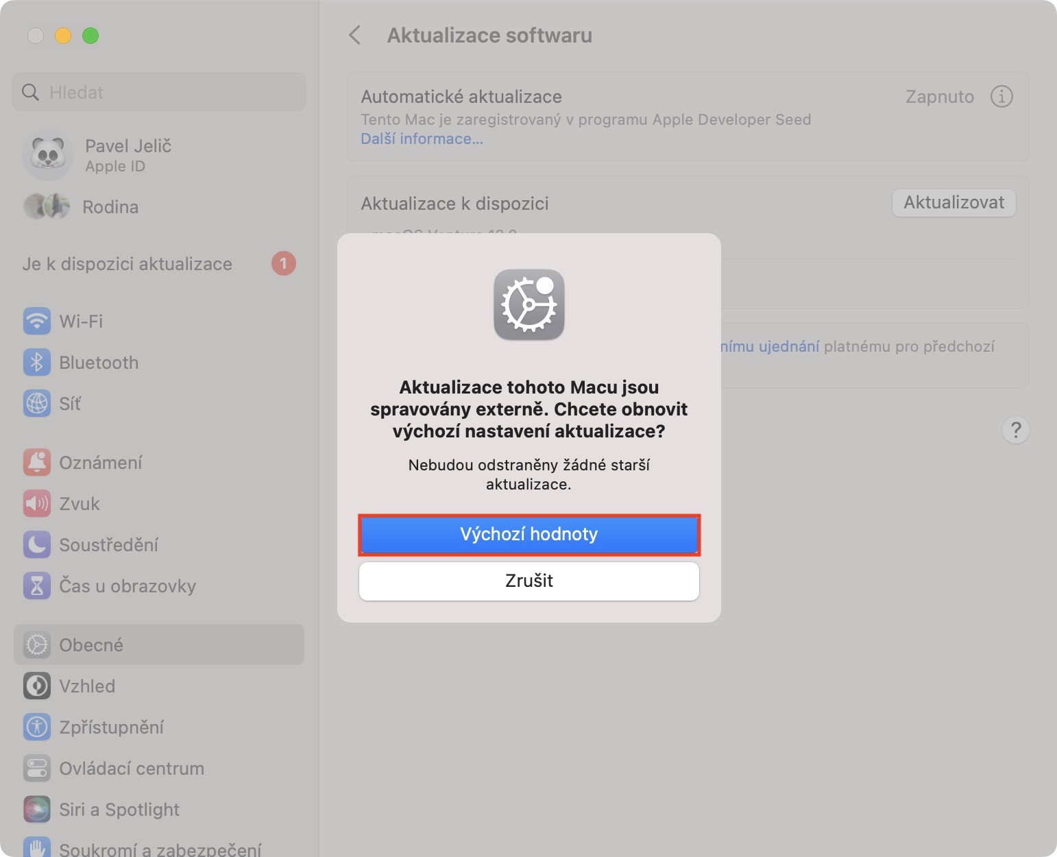 3. Následně níže rozklikněte kolonku s názvem Obecné.
