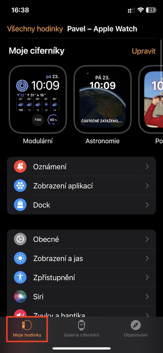2. Zde se ve spodním menu přesuňte do sekce Moje hodinky.