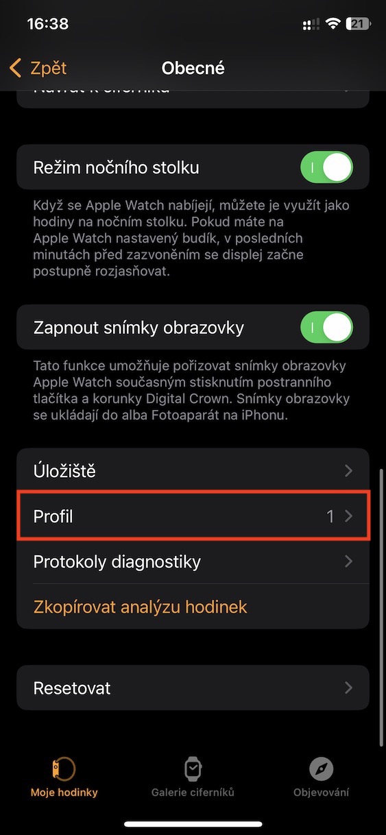 4. Poté se přesuňte úplně dolů a otevřete řádek Profil.