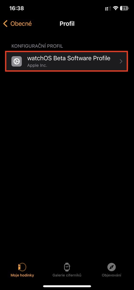 4. Poté otevřete řádek watchOS Beta Software Profile.