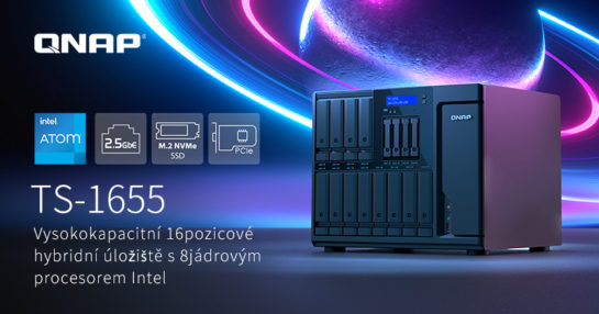 Tisková zpráva: Společnost QNAP® Systems, Inc., přední inovátor v oblasti výpočetních, síťových a úložných řešení, představila vysokokapacitní stolní 2,5GbE NAS TS-1655, který pojme dvanáct 3,5” pevných disků a čtyři 2,5” SSD disky. Model TS-1655 je navržen s hybridní úložnou architekturou, která nabízí vyvážený poměr mezi výkonem a cenou, a zahrnuje 8jádrový výpočetní výkon, vysokou rychlost díky rozhraní 2,5GbE a možnost rozšíření přes PCIe pro zvýšení efektivity při sdílení souborů mezi týmy, spolupráci, zálohování, obnově dat po havárii a virtualizaci.