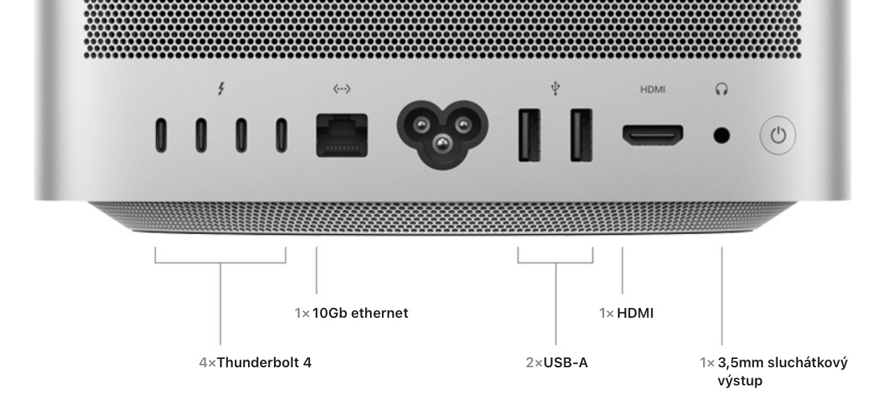 Důležité je zmínit se také o konektivitě. Mac mini disponuje 2x Thunderbolt 4 konektor s čipem M2, potažmo 4x Thunderbolt 4 konektor s čipem M2 Pro. Následuje Ethernet (možno připlatit si za 10 Gb/s), HDMI, 2x USB-A a jeden sluchátkový konektor. Mac Studio se pak chlubí ve všech variantách stejnou konektivitou na zadní straně – 4x Thunderbolt 4, Ethernet 10 Gb/s, 2x USB-A, HDMI a sluchátkový konektor vzadu. Vepředu je u všech variant k dispozici slot na SDXC kartu, varianta s M1 Max pak disponuje 2x USB-C (až 10 Gb/s) a varianta s M1 Ultra disponuje 2x Thunderbolt 4 (až 40 Gb/s). Z hlediska bezdrátové konektivity pak u Macu mini zmíníme Wi-Fi 6E a Bluetooth 5.3, u Macu Studio pak Wi-Fi 6 a Bluetooth 5.0.