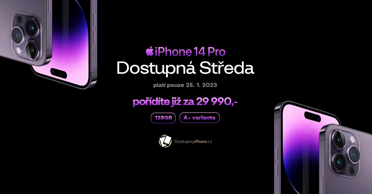 Komerční sdělení: Nejnovější vlajková loď od Apple pod 30 000 Kč? Pro dnešek realita. iPhone 14 Pro v rámci akce Dostupná Středa najdete na DostupnyiPhone.cz za pouhých 29 990 Kč.