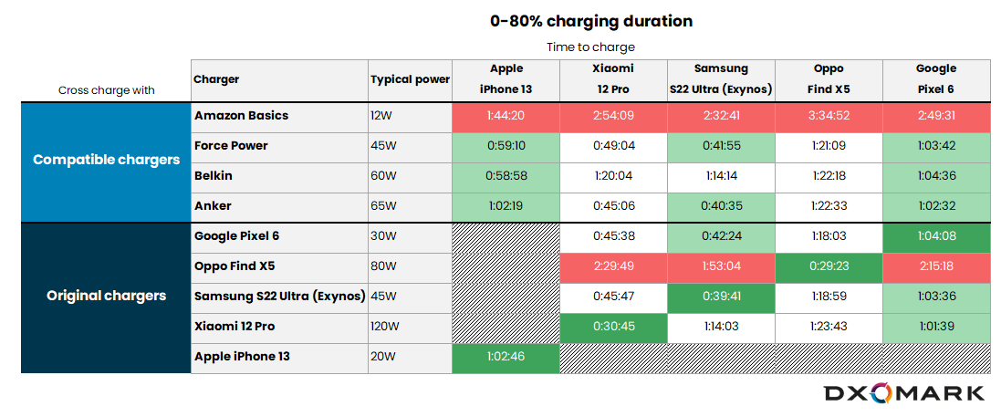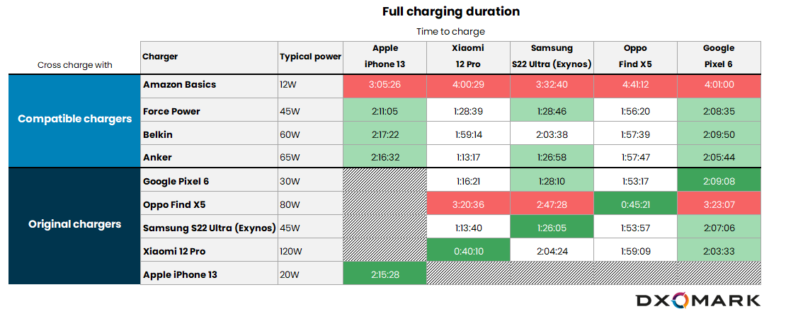 DXOMark je sice známý primárně pro jeho hodnocení fotoaparátů smartphonů, nicméně v poslední době začal „fušovat do řemesla“ i testerům výdrže baterie a tak podobně. Nyní se zaměřil konkrétně na rychlosti nabíjení USB-C nabíječek a standardy, které s nimi souvisí. Zjištění, která se mu podařily testy získat, jsou pak poměrně zajímavá a lze z nich říci, že minimálně méně znalé uživatele mohou USB-C porty do jisté míry potrápit. Rozhodně se totiž u nich nedá říci jednak to, že větší příkon znamená vždy vyšší rychlost, ale dokonce ani to, že stejný příkon znamená to, že bude nabíjení jednou či druhou nabíječkou stejně rychlé. Do nabíjení 30W jsou sice rozdíly v rychlosti vcelku zanedbatelné, což je minimálně pro fanoušky Applu dobrá zpráva, jelikož se se zvyšováním rychlosti kabelového nabíjení tak úplně nepočítá, nicméně zařízení s podporou nabíjení rychlejšího než 30W už mohou dle DXOMark skutečně pocítit to, že kvůli podpoře nejrůznějších standardů můžou wattově stejné nabíječky nabíjet různě rychle a v krajním případě dokonce i to, že nabíječka s nižšími watty, avšak podporou určitých standardů si bude s telefonem rozumět více než nabíječka s vyššími watty, ale bez standardů.
