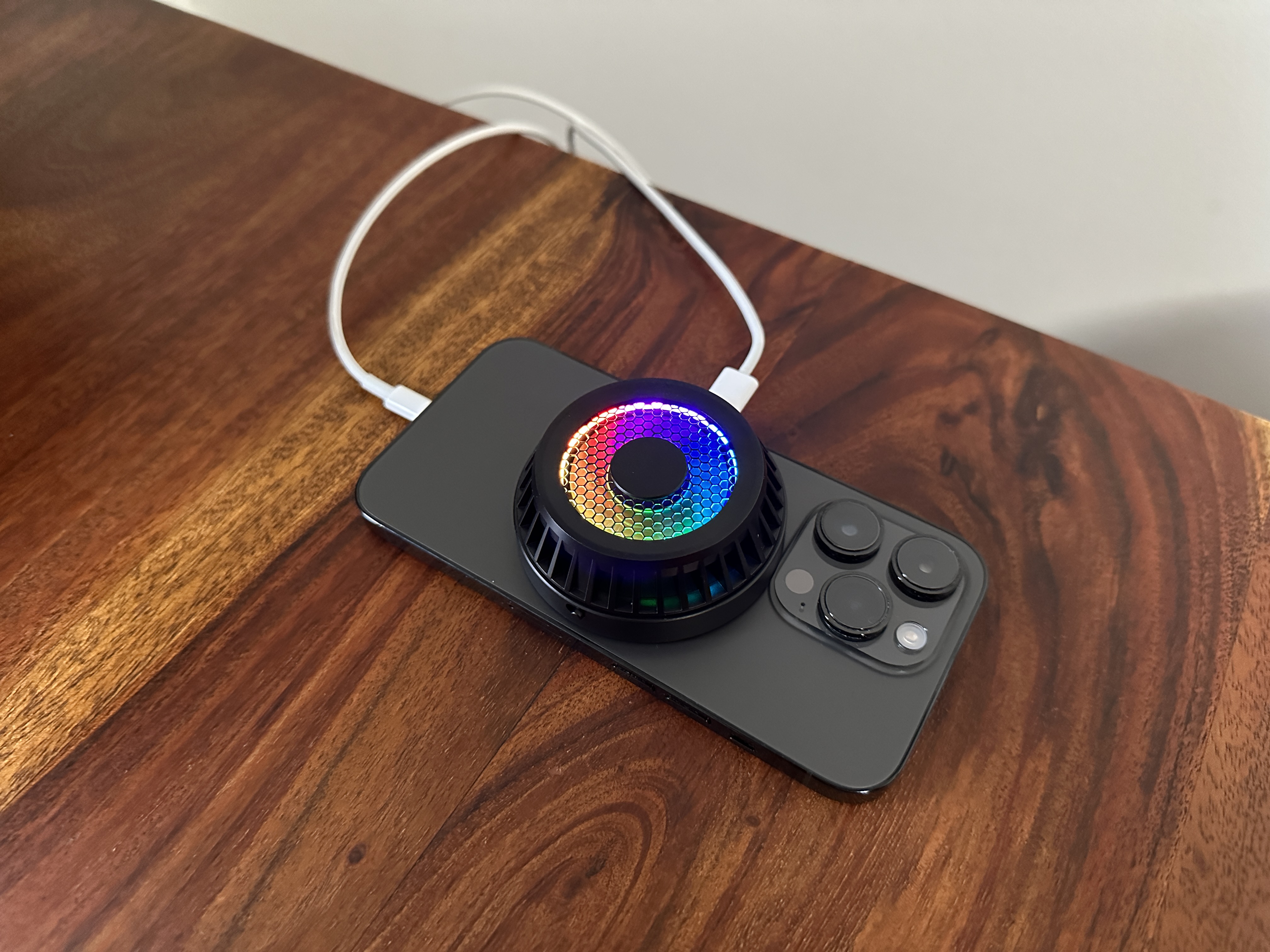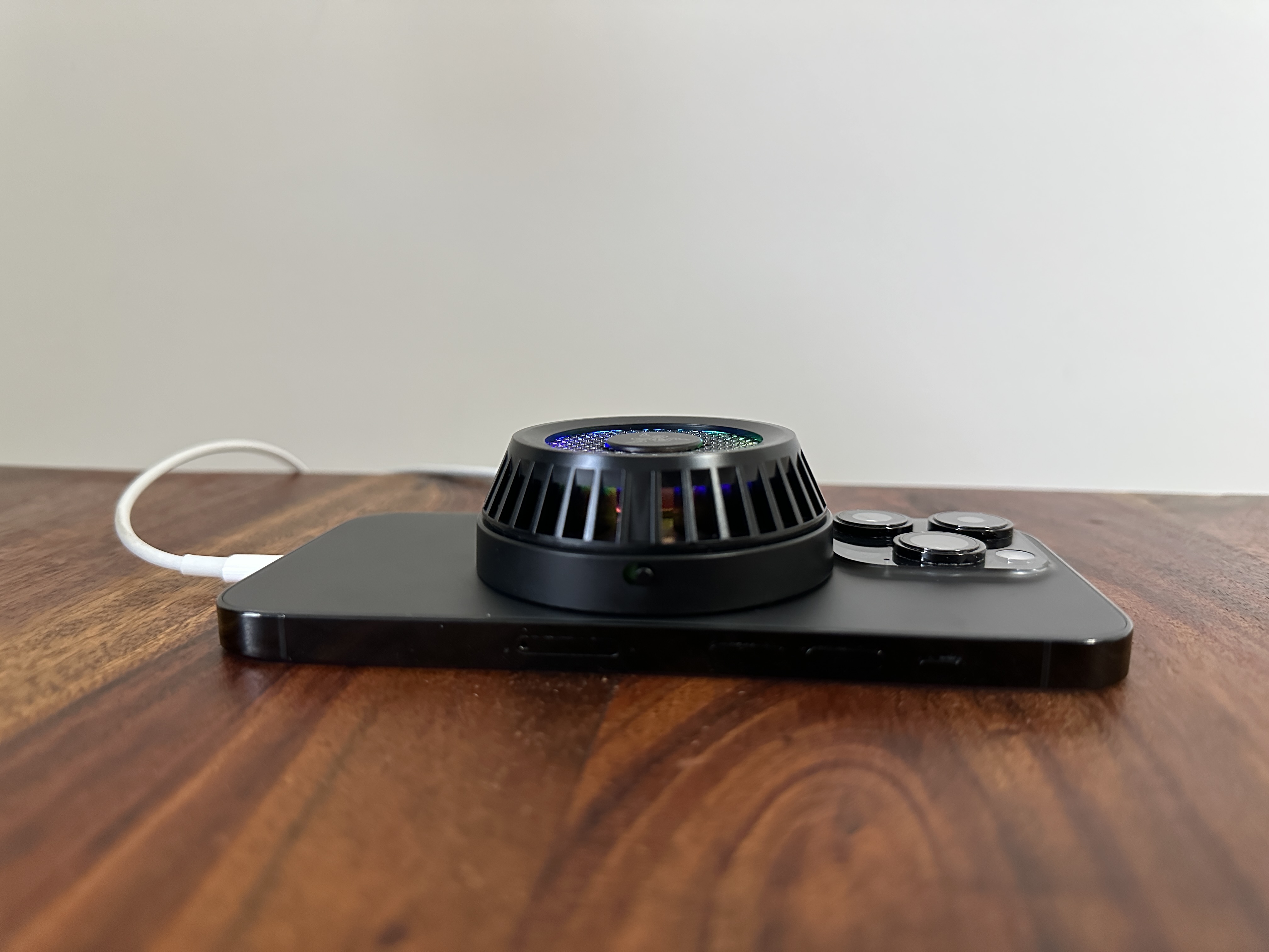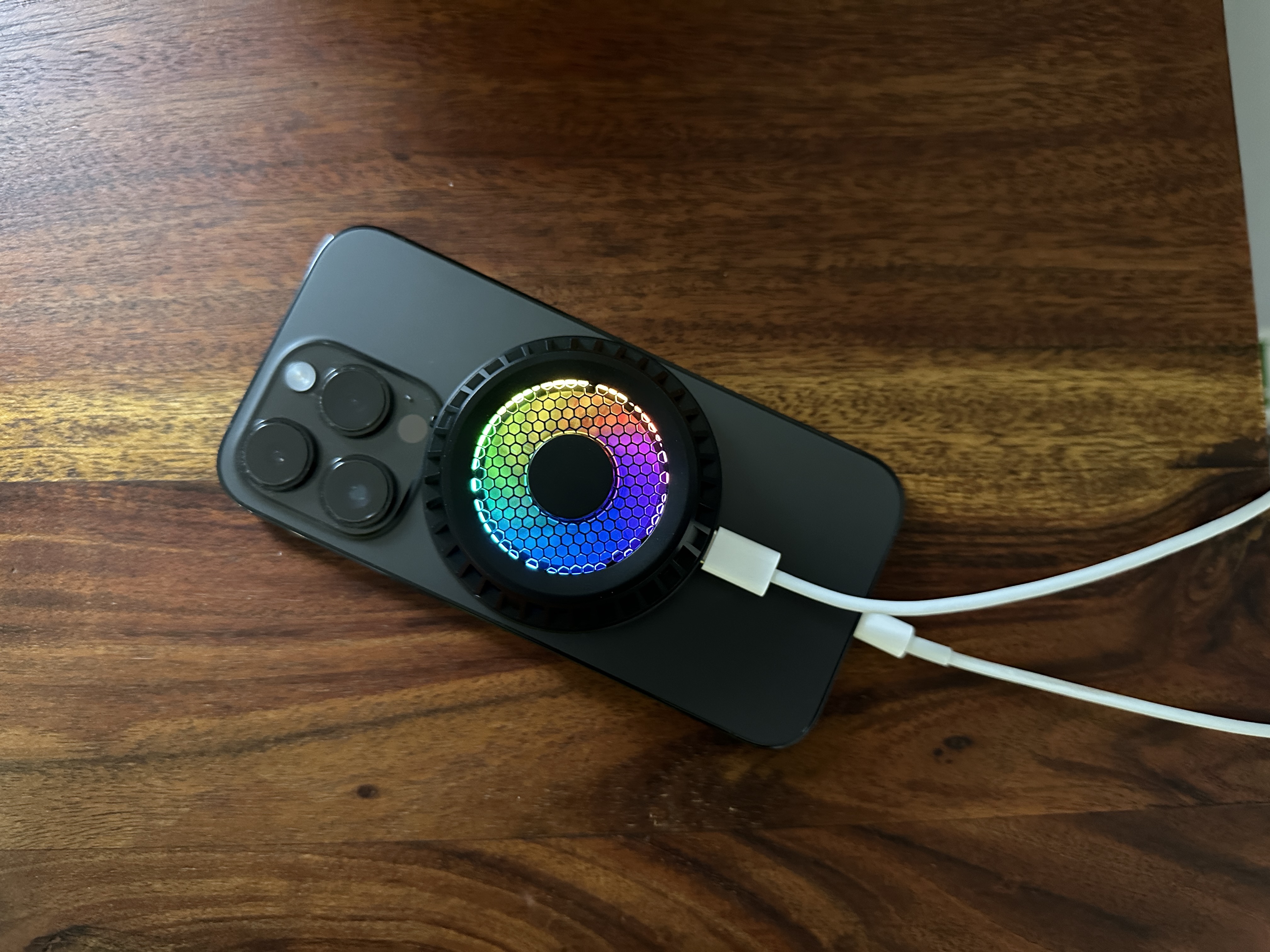 Samotný Phone Cooler se připevní magnetem k MagSafe vašeho teleofonu, ovšem jak sami tušíte, tak iPhone nemá revezní nabíjení, a Cooler nemá pro změnu baterii. Tedy aby se větráček točil, je nutné jej mít neustále připojený kabelem k nabíječce a to pomocí USB-C kabelu. V tom by nebyl nijak zásadní problém, stejně totiž od vaší MagSafe nabíječky vede kabel a tak se vlastně nic nemění oproti běžnému nabíjení pomocí MagSafe, říkáte si. No, jen je tu taková drobnost a to fakt, že Phone Cooler nemá v sobě  zabudovanou bezdrátovou nabíječku. Vy tedy připevníte větráček k telefonu a aby se točil, tak jej připojíte kabelem k nabíječce, ovšem tento kabel slouží jen k točení větráčku. Aby se telefon nabíjel, musíte do něj zapojít starý dobrý Lightning kabel a strčit jej do nabíječky.