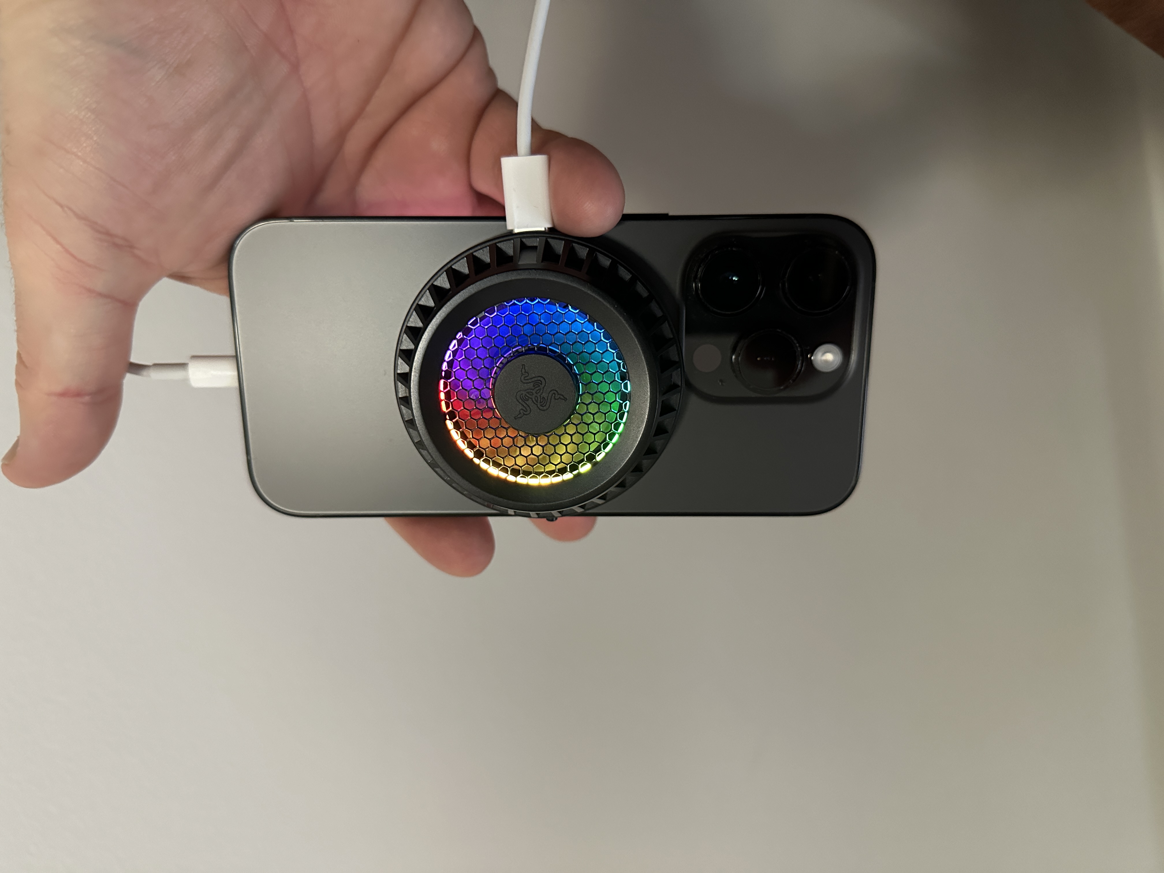 Aby se tedy telefon nabíjel a zároveň chladil, máte k němu připojené dva kabely, což asi není potřeba příliš hodnotit a o tom, jak to vypadá a působí se asi uděláte obrázek sami. Tím, že nemá Phone Cooler baterii, můžete jej využívat vlastně jen tam, kde máte nabíječku. Samozřejmě jej lze použít i s powerbankou, ale to je vlastně to stejné a tak nastává další problém a tom, že doma většinou nemáte až takové horko aby se telefon přehříval a venku byste museli použít powerbanku. Jediné dvě využití, na které jsem tak přišel, jsou v tom případě, kdy chcete co nejrychleji nabít svůj telefon a to v případě, že nutně někam potřebujete odejít a mít co nejvíc procent baterie. Pak zapnete Cooler a použijete silnou nabíječku a opravdu dojde k tomu, že se telefon bude nabíjet rychleji. Druhá možnost je pak v případě, kdy jste například na pláži, vzít si s sebou powerbanku a chladit svůj telefon pomocí powerbanky. V létě na sluníčku se totiž telefon přehřívá nejvíc a tak je to vlastně jediné využití, ovšem opět potřebujete powerbanku. Asi vás napadlo to stejné, co mě, i když je to nesmysl, lze využít baterii v telefonu a propojit USB-C na Lightning kabelem větráček přímo s telefonem? Odpověď je jednoduchá, propojit samozřejmě jdou, ale větráček se nezačne točit.
