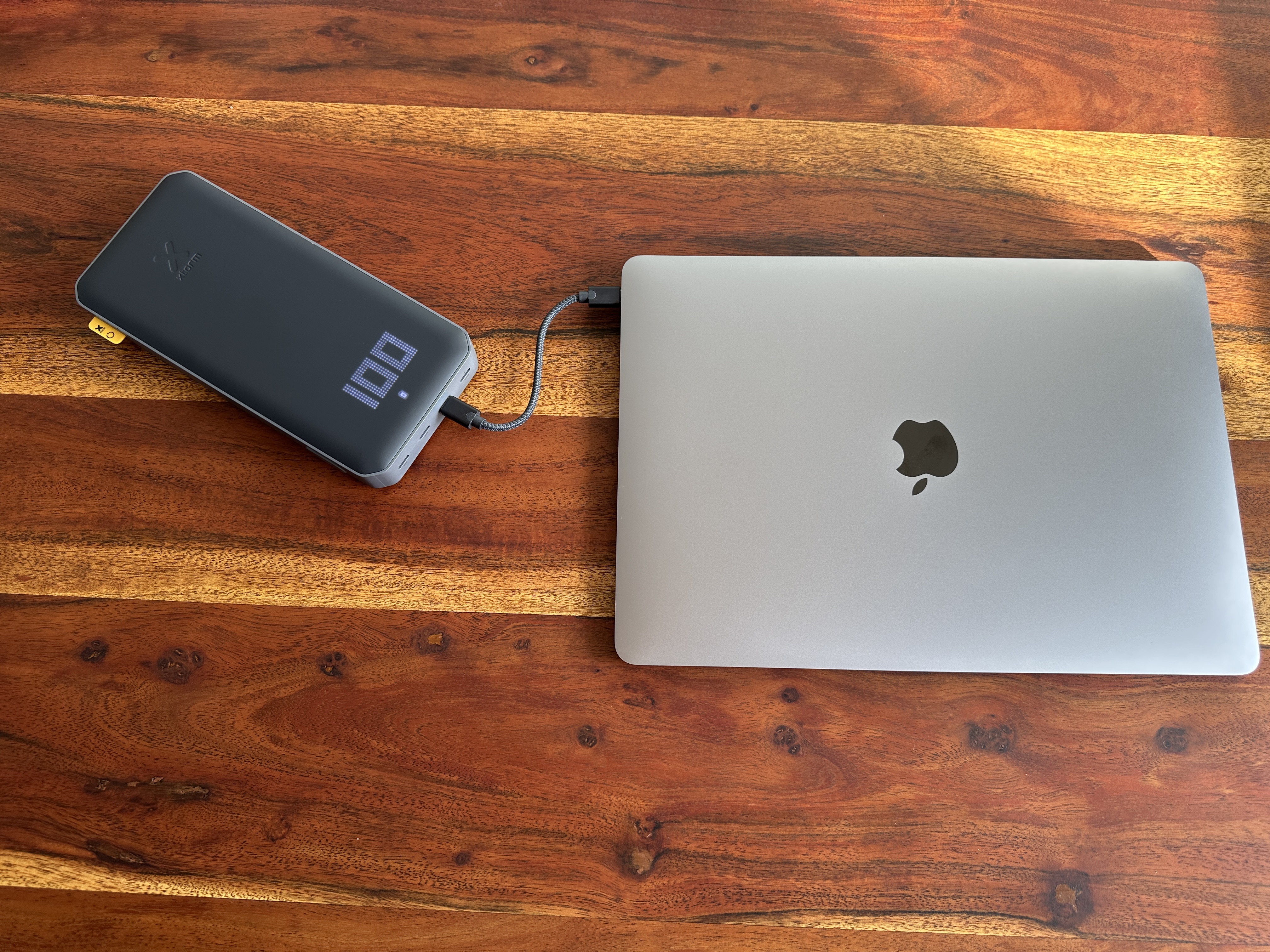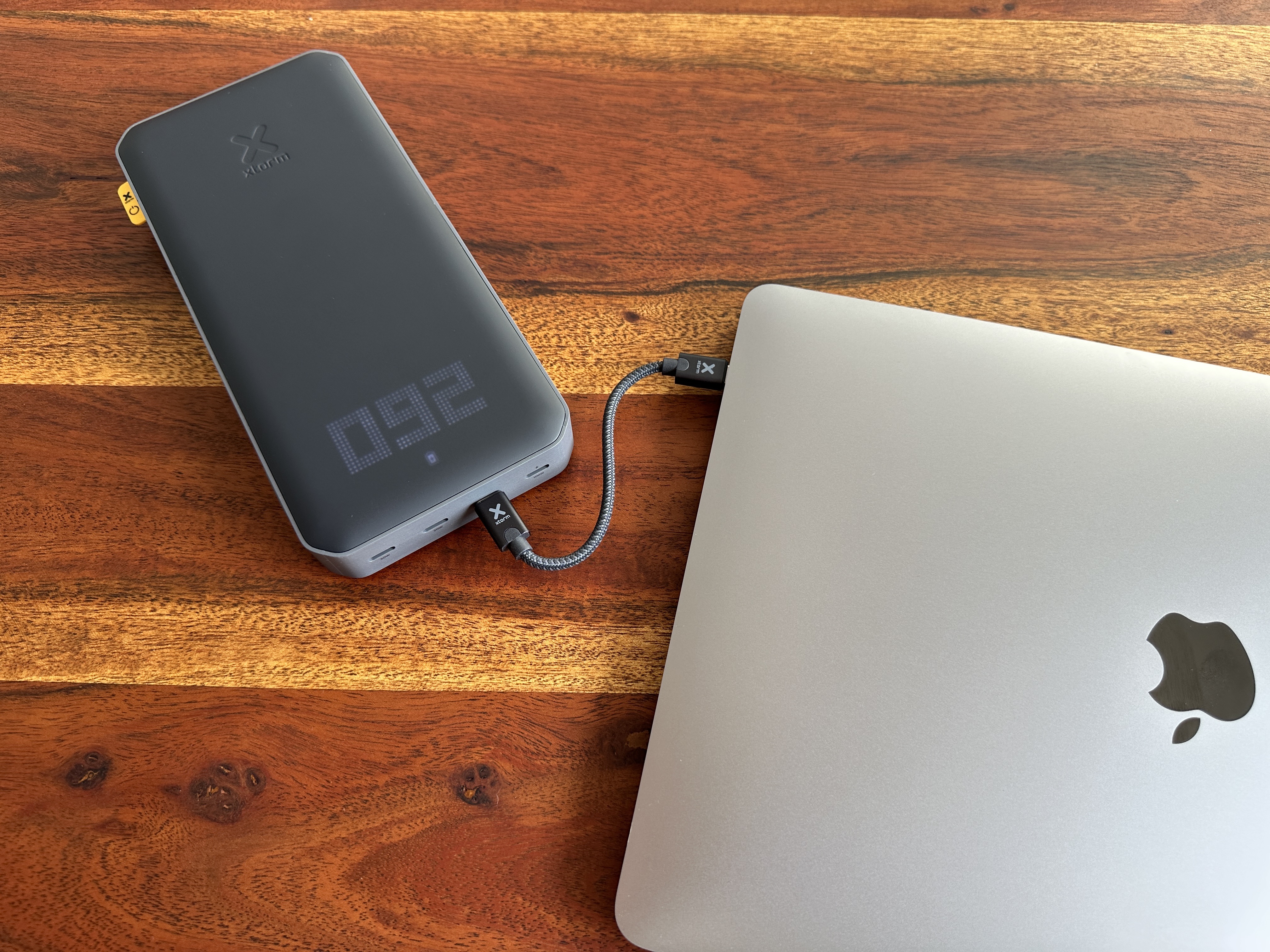 Tím nejdůležitějším u powerbanky je samozřejmě to, co z ní dokážete nabít. Já jsem powerbanku testoval na svém MacBooku Air M1 z roku 2020. Zcela vybitý počítač, tedy tak vybitý, že se po zmáčknutí tlačítka pro zapnutí neobjevilo ani logo upozorňující na nutnost počítač nabít, dokázala powerbanka nabít na 100 % za 1 hodinu a 45 minut, což považuji za naprosto perfektní čas, který skutečně odpovídá nabíjení z rychlé nabíječky připojené do zásuvky. Powerbanka byla nabita na 100 %, které ukázal její kontrolní displej. Po nabití MacBooku na 100 % zůstalo podle kontrolního displeje v powerbance 30 % celkové kapacity. Podle iFixit má MacBook Air M1 2020 kapacitu baterie 50 Wh, kapacita powerbanky je pak podle výrobce 89Wh. Reálně tak nedošlo k příliš velké ztrátě během nabíjení. iPhone 14 Pro má kapacitu baterie ve Watt hodinách 12,38 Wh, což znamená, že při odečtení ztrát budete mít možnost nabít telefon z této powerbanky šestkrát za sebou, což není vůbec špatný výsledek.