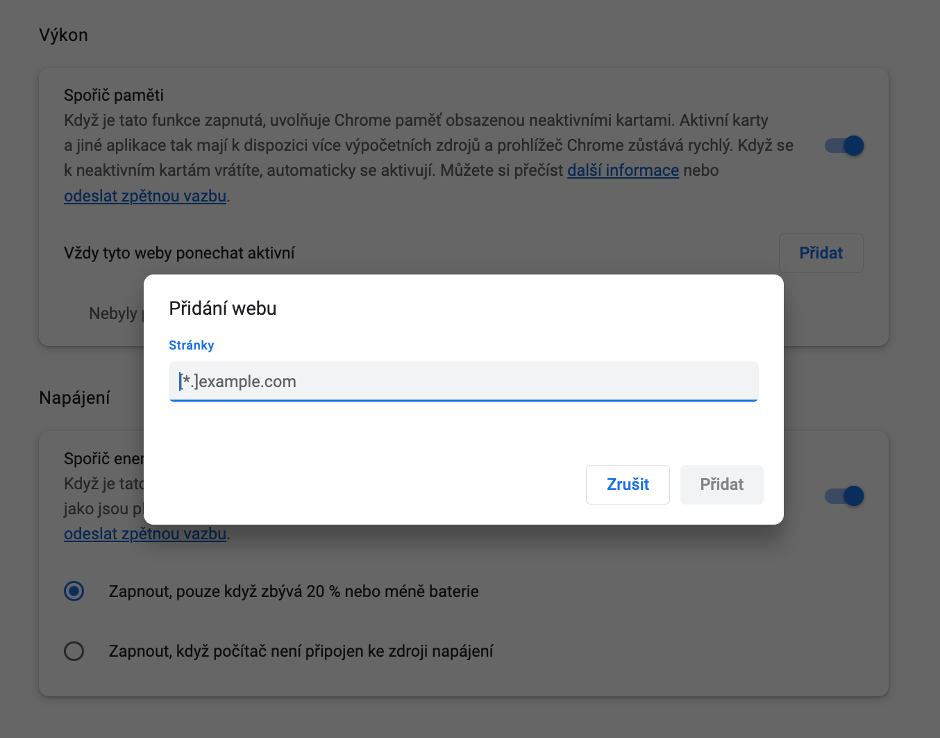 Druhou funkcí, která vám může výrazně pomoci, je Chrome Energy Saver. Ta šetří energii baterie vašeho počítače omezením aktivit na pozadí a vizuálních efektů. Mezi tyto efekty patří například animace a plynulé rolování, stejně jako snížená frekvence snímků videa. Kromě možnosti zapnout/vypnout jsou k dispozici ještě další možnosti přizpůsobení: zapnout Chrome Energy Saver pouze tehdy, když je baterie na 20 % nebo méně, nebo v případě, kdy je váš MacBook odpojený od zdroje napájení.
