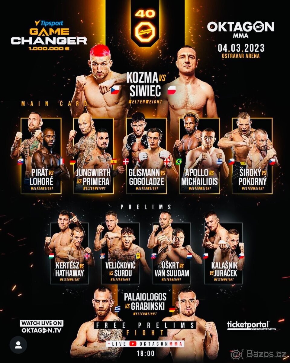 Oktagon Game Changer živě by dnes měl běžet na obrazovce naprosto každého fanouška MMA. Po několikatýdenním půstu tu totiž máme další turnaj domácí organizace OKTAGON MMA a to ne jen tak ledajaký. Dnes si totiž budeme moci užít první kolo nového projektu Oktagon GameChanger, ve kterém se rozdá mezi zápasníky 1 milion euro. Na kartě se proto objeví ti nejlepší z nejlepších jako například David Kozma, Samuel Pirát Krištovič či Apollo Silva. Zatímco předešlé hvězdně obsazené turnaje včetně toho, na kterém se utkal Vémola s Véghem, byly vysílány mimo jiné na O2 TV Sport v Česku a na JOJ Plus na Slovensku, posledních několik turnajů včetně toho dnešního ve formě OKTAGON Game Changer běží jen na dvou platformách – konkrétně na OKTAGON.tv skrze Pay per view a na Tipsportu. (TIP: Oktagon live stream free lze sledovat na Tipsportu zde.