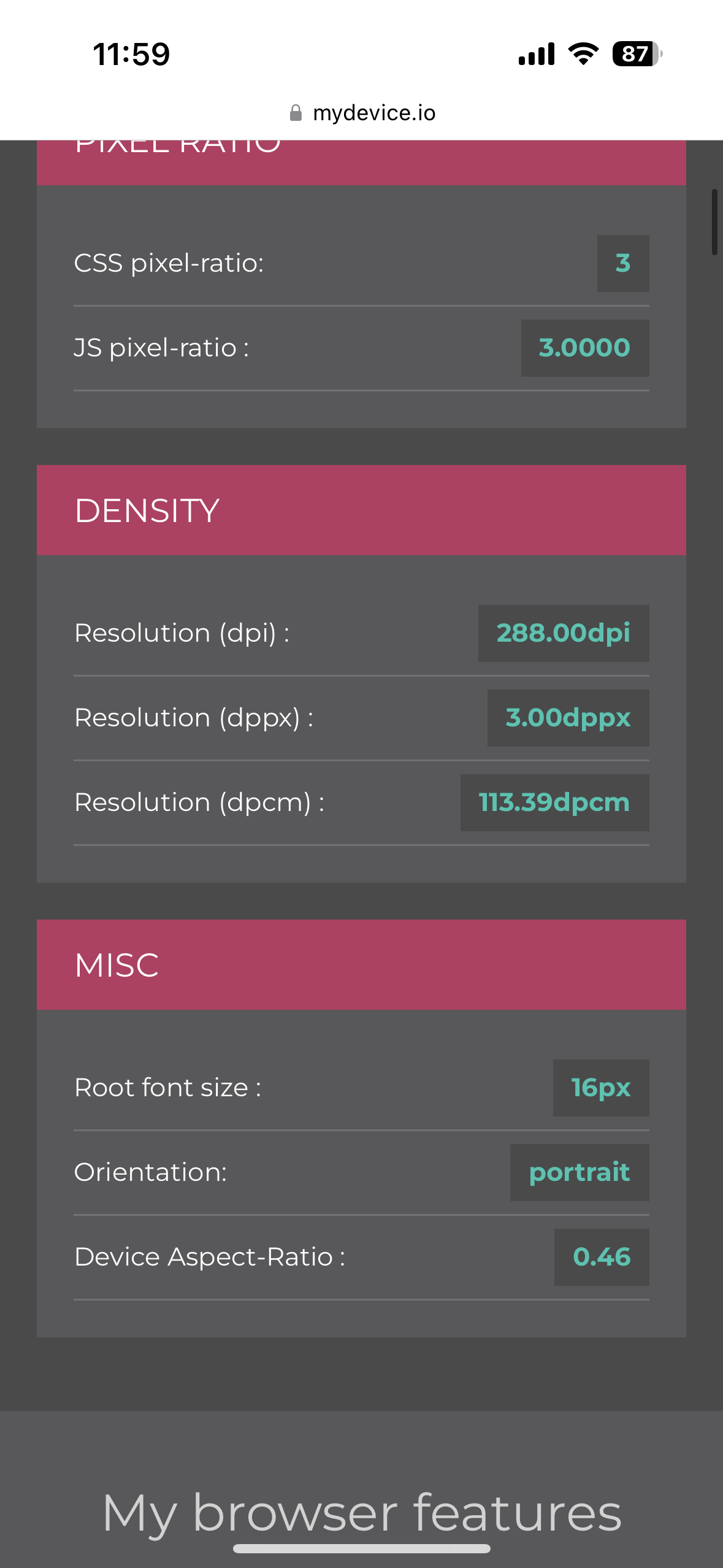 Pokud chcete zjistit informace o vašem zařízení, respektive o jeho displeji, existuje jednoduchý způsob. Stačí jít na stránku mydevice.io a okamžitě se dozvíte, jaké rozlišení, husottu pixelů a podobně, má zařízení, které aktuálně používáte. Web se hodí jak pro vývojáře, tak i pro běžné uživatee, kteří se mohou podívat na vlastnosti svého zařízení, respektive jeho prohlížeče. Zjistíte například jaké formáty dokáže prohlížeč přehrát, nebo co vlastně podporuje a co nikoli. K dispozici je také okamžitá možnost porovnat rozlišení svého zařízení s ostatními. Mimochodem pro zajímavost se můžete v galerii podívat, jaké rozlišení a další vlastnosti má Apple Pro Display XDR.