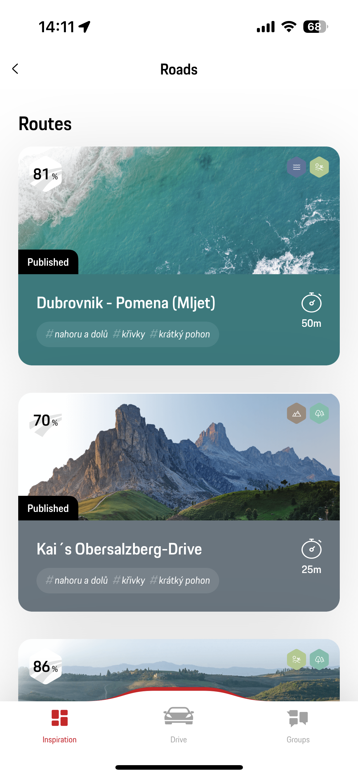 Samozřejmě nechybí možnost, abyste trasu vytvořili sami a podělili se s ostatními o to, kam rádi jezdíte a kde stojí za to spálit trochu gumy a benzínu. Nechybí ani komunitní funkce, kde můžete sdílet fotky z vašich výletů nebo se pochlubit fotkami svého vozu. Pokud se vám něčí trasa líbí, můžete se podívat na jeho profil a projet další trasy, které vytvořil. Aplikace vám ukáže u každé trasy to nejdůležitější a to je délka, průměrná rychlost, čas jízdy, počet zatáček, převýšení a také jak dlouho jedete lesem, horami nebo městem. Trasy lze hodnotit a sdílet v rámci komunity.